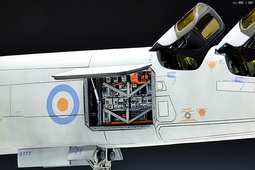 기체의 성능이나 배경이야 어떻게 되었든 모델러의 관점에서는 이 비행기가 ′멋있느냐’ 혹은 충분히 ′특색있게(괴상하게)′ 생겼느냐에 관심을 두면 될 터인데 그 시대 영국 개발 비행기로서는 아주 특이하게도 ′괴상하게′ 생기지 않고 오히려 전체적인 라인이 굉장히 세련되고 멋지게 생겼습니다. 어떻게 보면 SF적인 느낌도 살짝 들 정도인데 저는 보지 못했습니다만 일본 애니의 주인공 기체로도 등장했다는데 그 선택에 수긍이 갑니다. 긴 목, 아래로 향한 주익 끝단, 그리고 흰색의 ′안티 플래시′ 도장이 어우러져 영락없이 한 마리 백조가 날아가는 듯한 아름다운 모습을 보여줍니다.