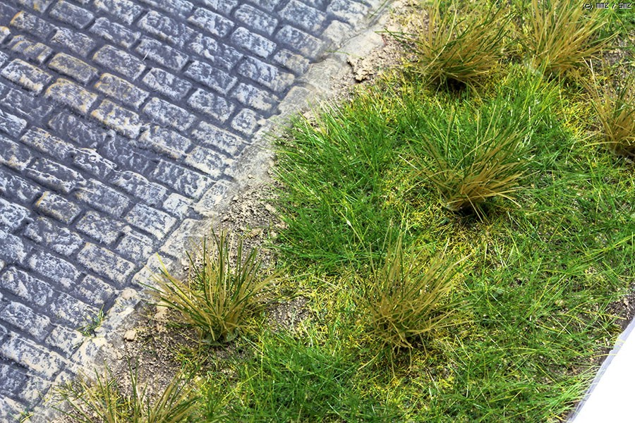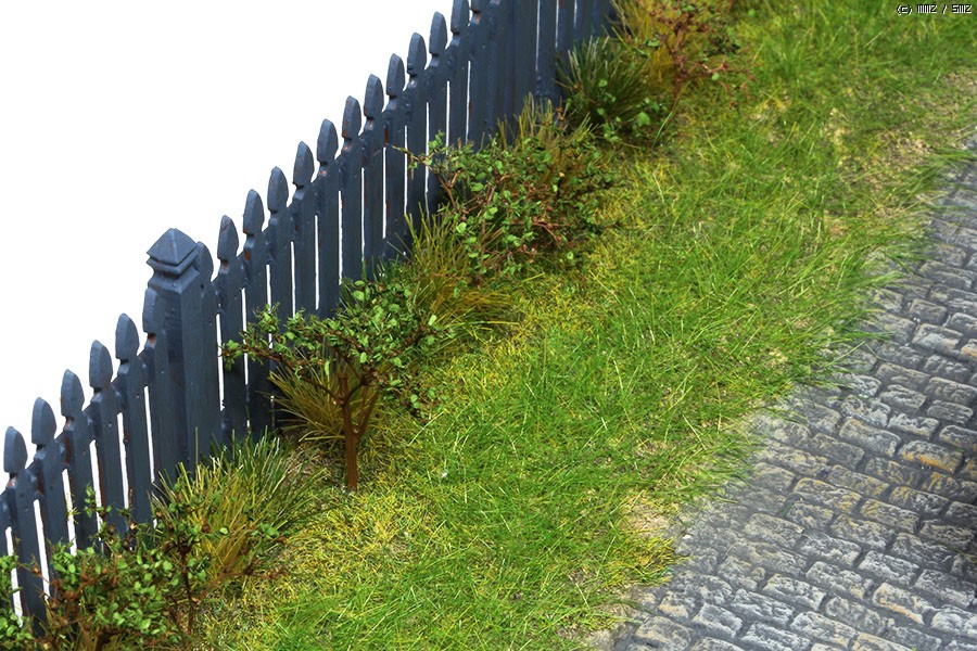 젤스톤 및 조선자아크릴 로 지면 표현 후 2mm ~ 6mm 잔디 및 네이쳐트리셋 으로 팬스 쪽 땅 표현을 넣어주었습니다.
