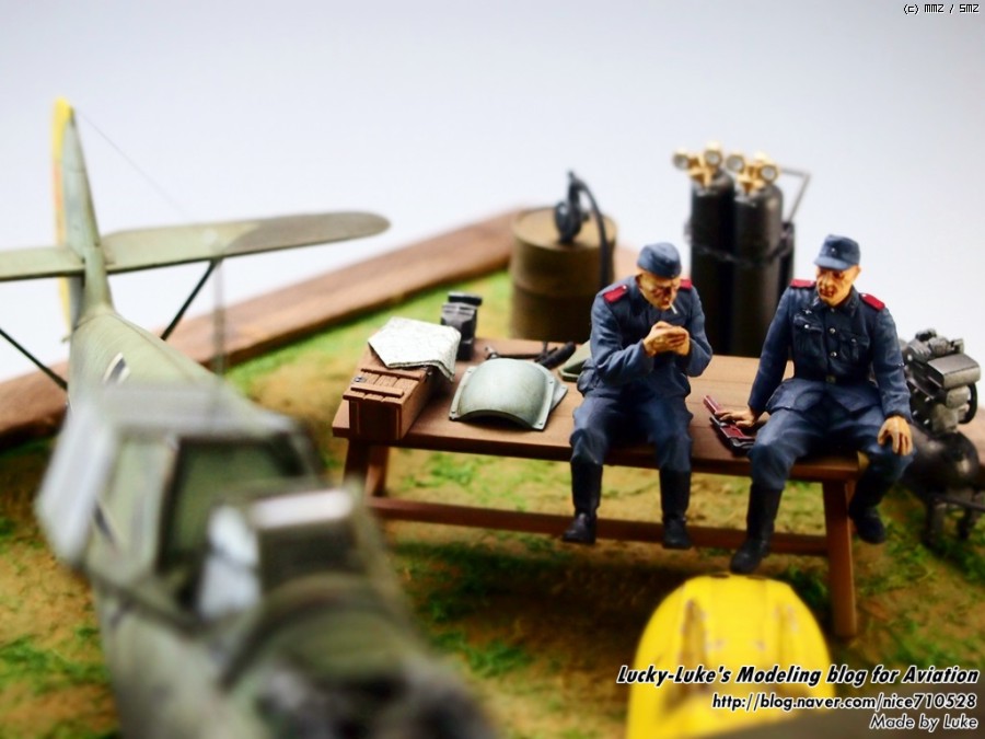 인형은 32스케일의 인형이 없어서, 35스케일 인형을 가지고 루프트바페 복장으로 도색만 바꿔줬을 뿐입니다.