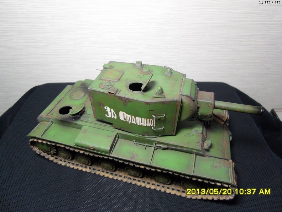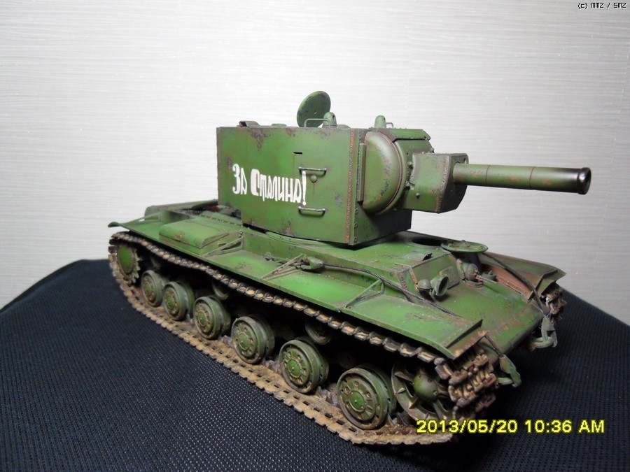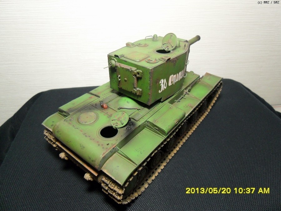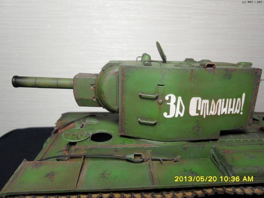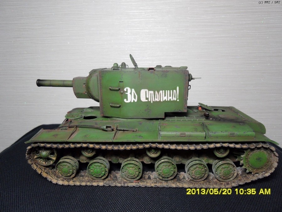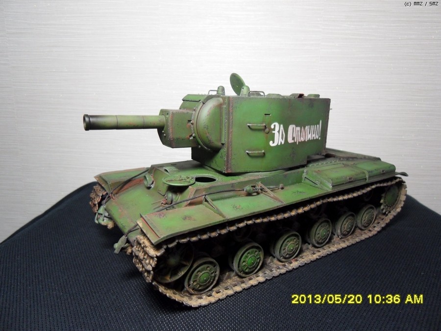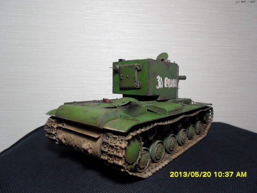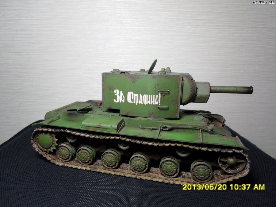 안녕하세요? 황구맨입니다. 비네트나 디오라마에 올라갈 녀석이긴 하지만 일단 단품으로 완성작 올립니다. 워낙 고수님들의 많은 작품이 많았던 KV-2인지라 올리기 조심스럽지만 나름 열심히 만든 녀석입니다. 즐감하시길. 아, 사진찍다 보니 헤드라이트 투명 부품을 빼먹었네요. 나중에 비네트 완성시 끼어주어야 할 듯 합니다.