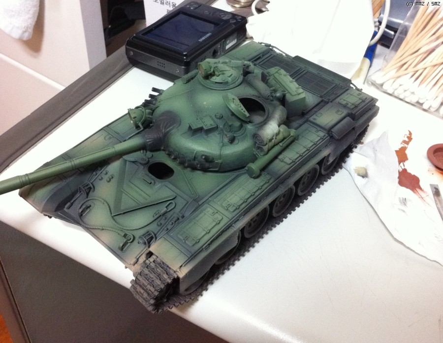 기본 도색은 여러가지 락카 녹색을 적당히 섞어서 뿌려주었습니다.