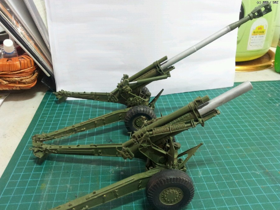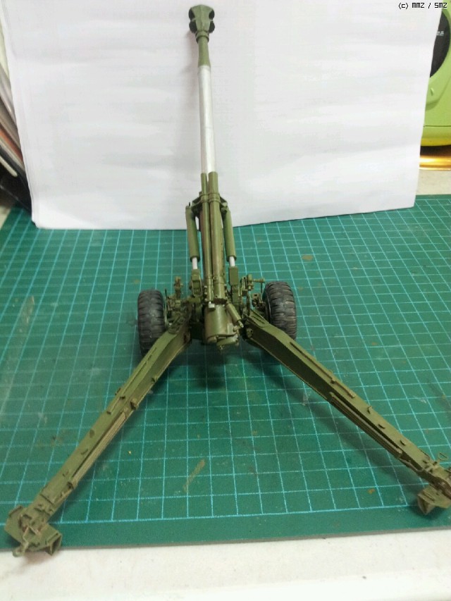 이전에 올라온 KH-179의작품을 봤읍니다. 한번 해보구 십었읍니다. 현재 키트가없는 KH-179를 나름대로 일부자작 했읍니다. 기본키트는 브롱코 M114A1이구요 도색은 한국도색이 너무어렵구 콤푸도없어서 일단단색으로 기본도색만해서 올립니다. 한국군 위장색을 붓으로 도색해야하는 사정으로... 그리고 포신의 제퇴기(머즐브레이크??)는 이것때문에 다른키트를 사기가 좀뭐해서 이틀에걸쳐서 프라판으로 자작했읍니다 조금다르더라도 이해부탁드립니다.완성되기까지 총소요기간은 아마3일정도 걸린듯하구요 기본도색은 IPP K-GREEN으로 했읍니다.많은조언 부탁드리고 혹시 도색을 가르쳐주실분 있으면 아낌없이 조언 부탁드립니다. 감사합니다.