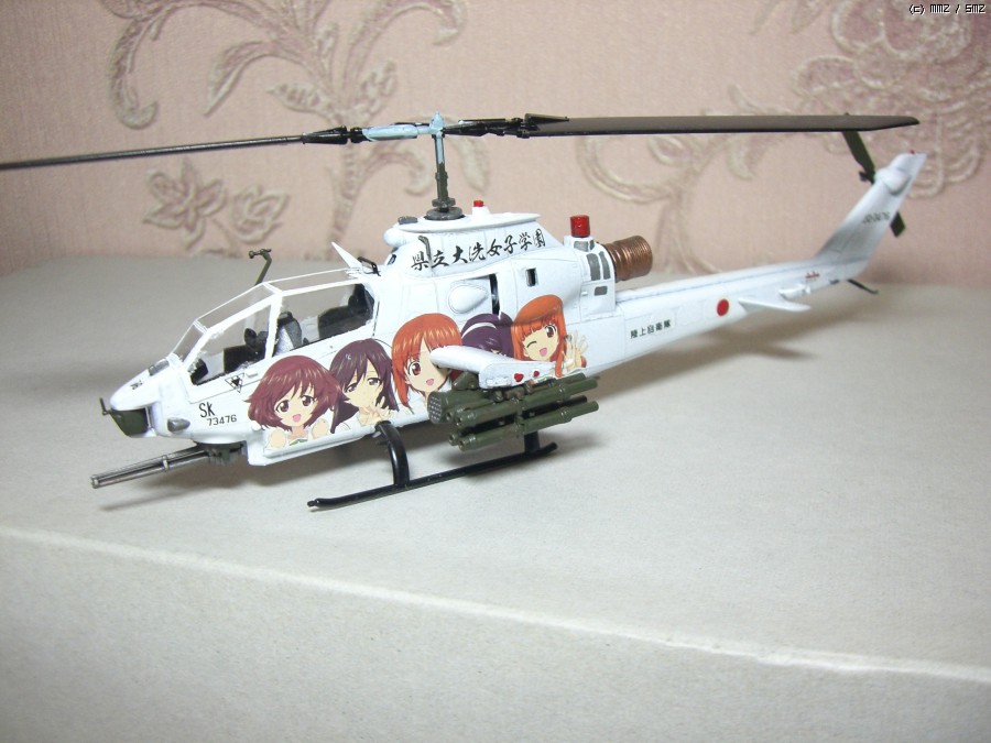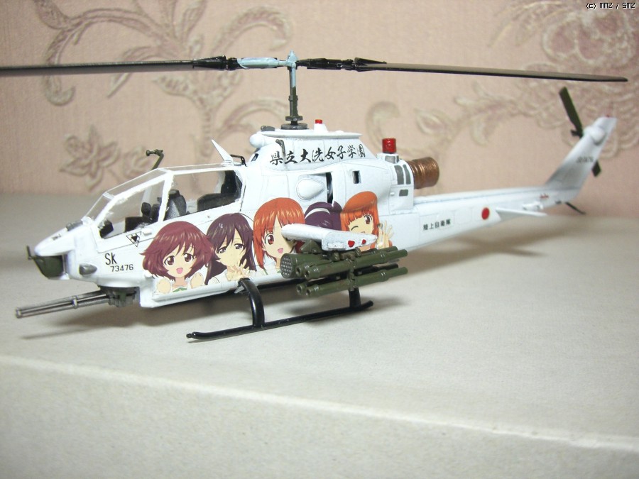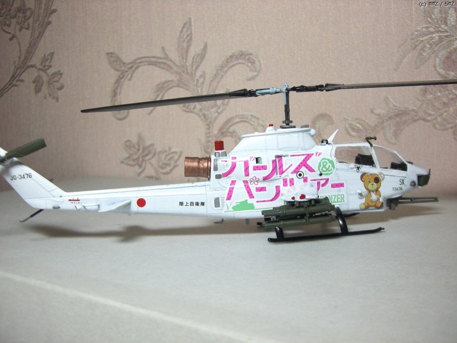 그런데 요즘 시중에 돌아다니는 별매데칼을 보니 육상자위대 스페셜마킹으로 딱 어울리겠단 생각이 떠오르더군요. 그래서 장터에서 자투리 데칼을 구하고, 마침 쌓아놓고 만들 계획이 없던 하세가와 1/72 AH-1S를 잡고 해치웠습니다.