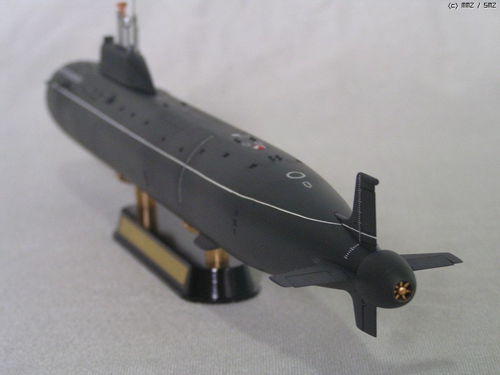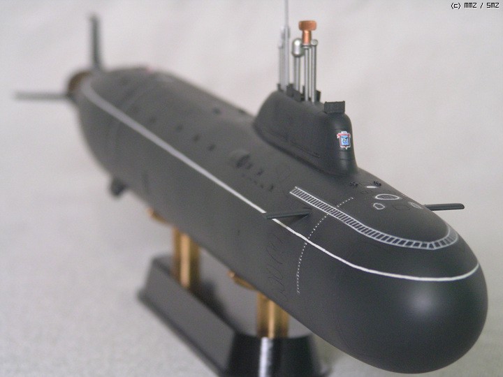 순항미사일핵잠수함인 쿠르스크에 비해 상당히 컴팩트 해졌고 기존의 소련 공격원잠에 비해선 다소 커진 상태 입니다.
