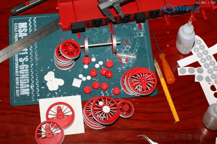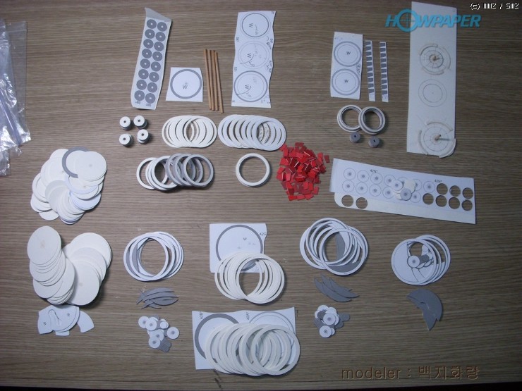 차륜을 만들기 위해 오리고 접은 도면들입니다..