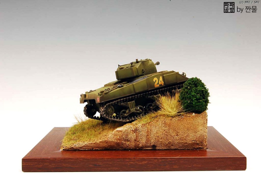 잔디는 2mm와, 6mm의 잔디를 사용하고 긴풀은 잘라서 에나멜선으로 묶은뒤 지면에 박아