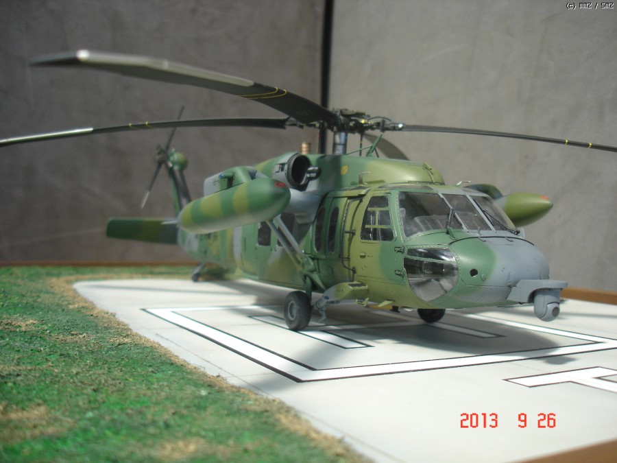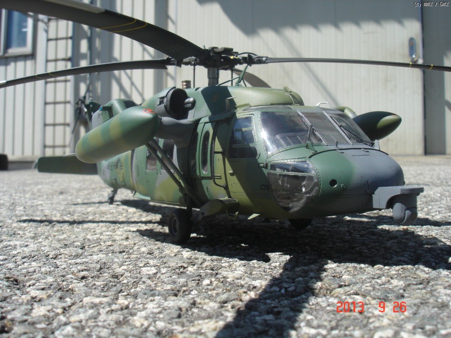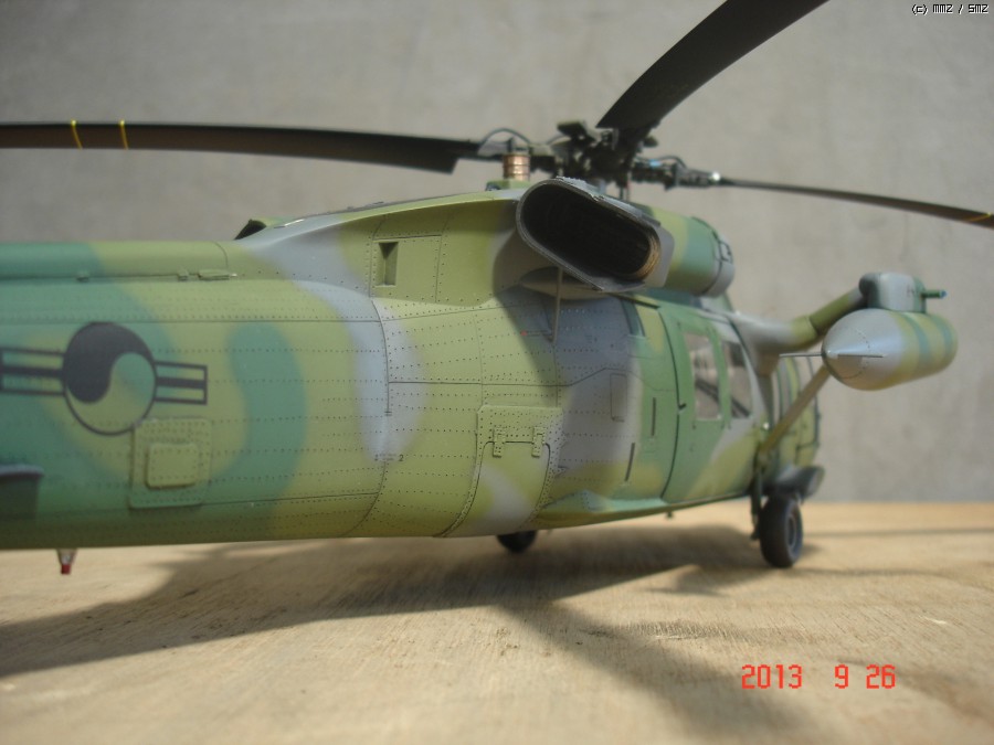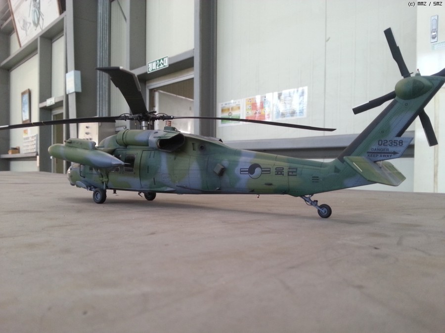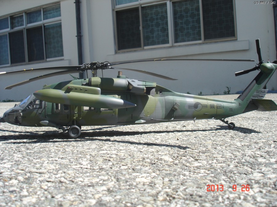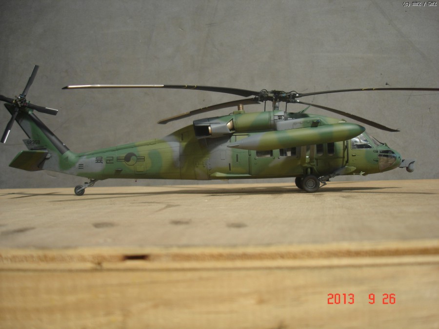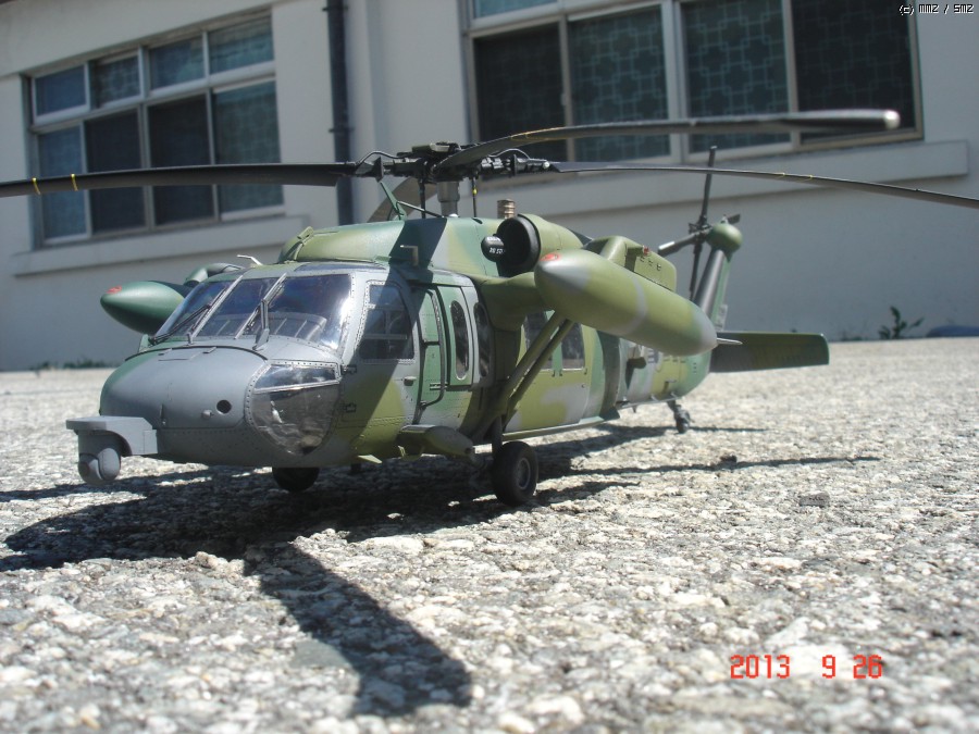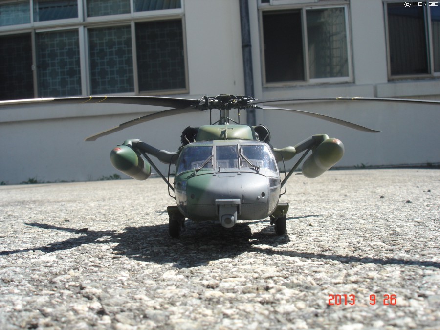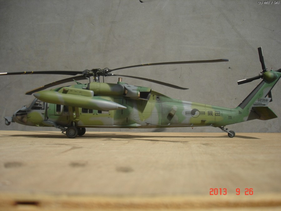아카데미 1/35 UH-60P 블랙호크 입니다. 이번에도 지인의 부탁으로 만들게 되었습니다.이번엔 울프팩의 컨버전킷 대한민국 공군용을 사용하여 602대대 ETS로 만들게 되었는데,어짜피 육군이나 공군이나 ETS와 전방 FLIR는 같이 사용하는거라 별차이는 없고 전방동체 하부의 안테나만 하나 부착 했습니다. 전방 하부 안테나는 모든기체가 다 가지고 있는것이 아니라 일부 기체만 장착하고 있으며 보조연료탱크 도색은 각 기체마다 조금씩 색의 조합이 달라 참 곤혹스럽게 하였지만 358호기 자료사진과 부대 방문하는 헬기를 보고 따라 도색 하였습니다.그리고 60은 각 기체마다 색의 배열이 조금씩다르지만 기체 도장은 거의 같고 연료탱크 도색만 조금씩 다릅니다. 즐감들 하시기 바랍니다.