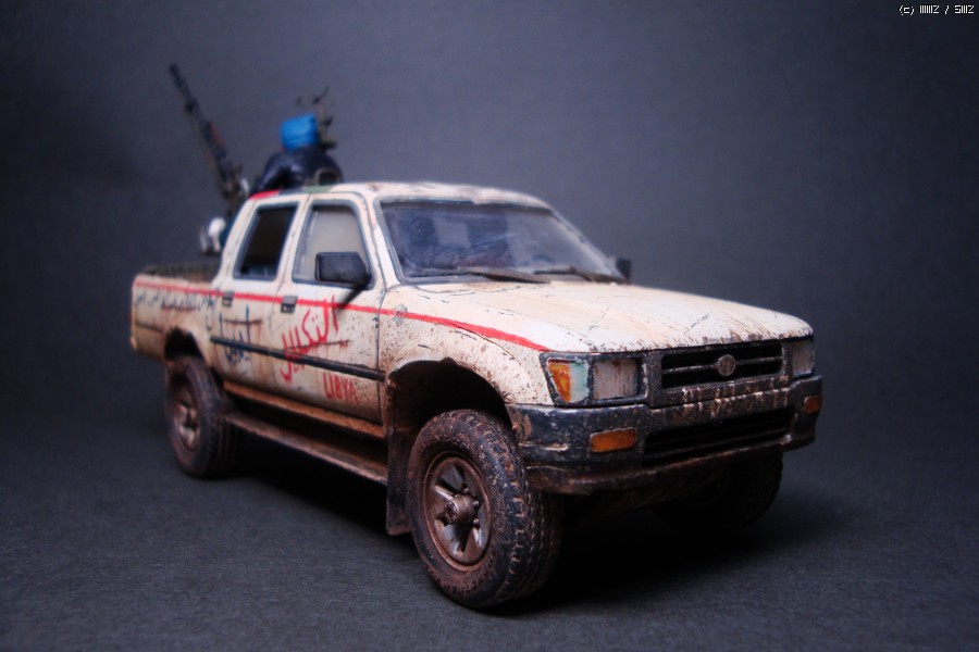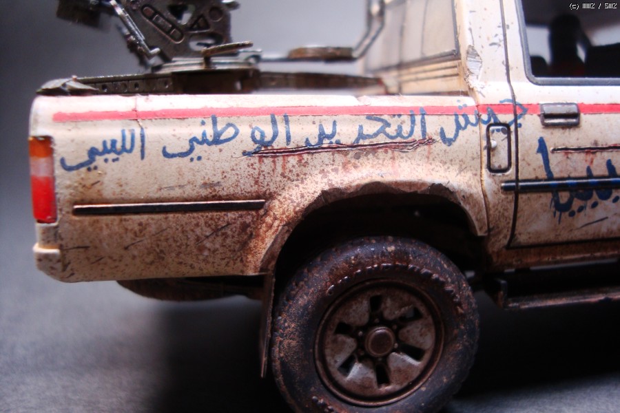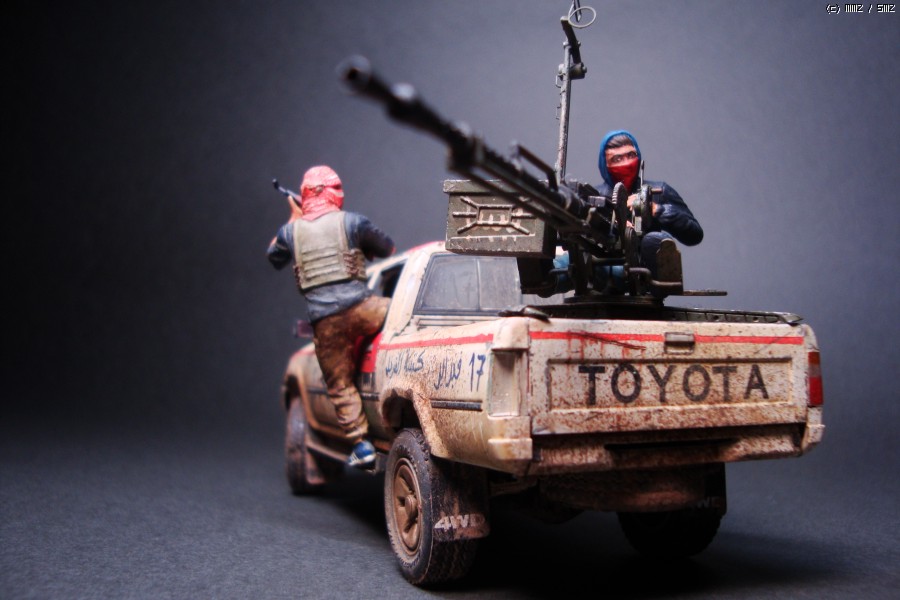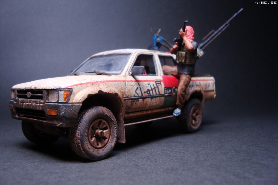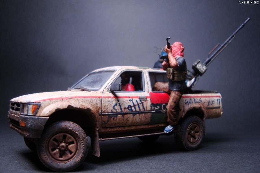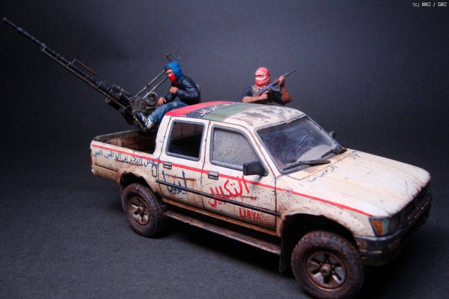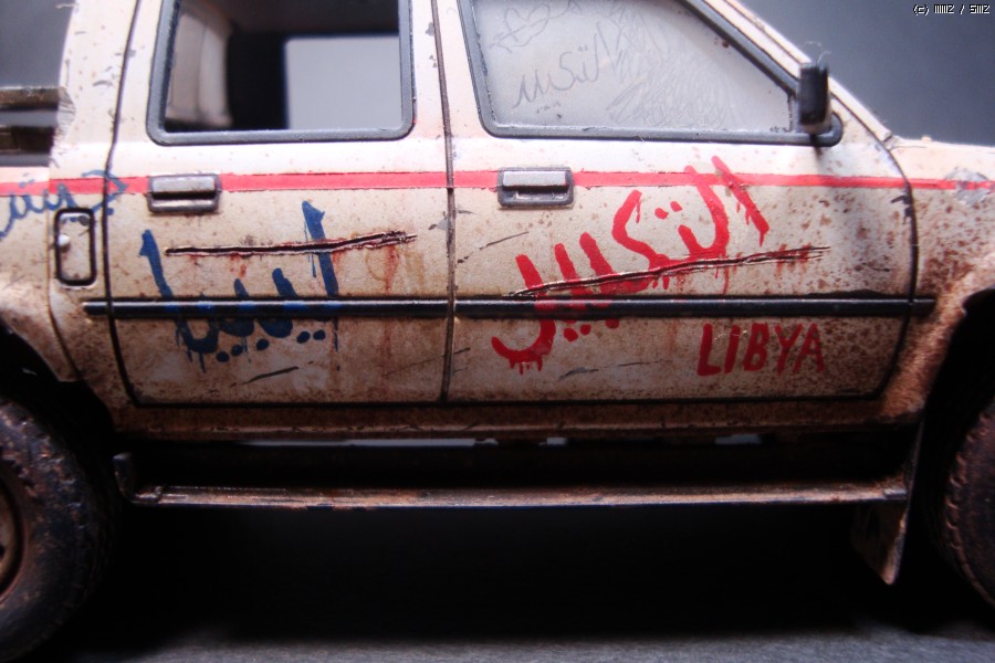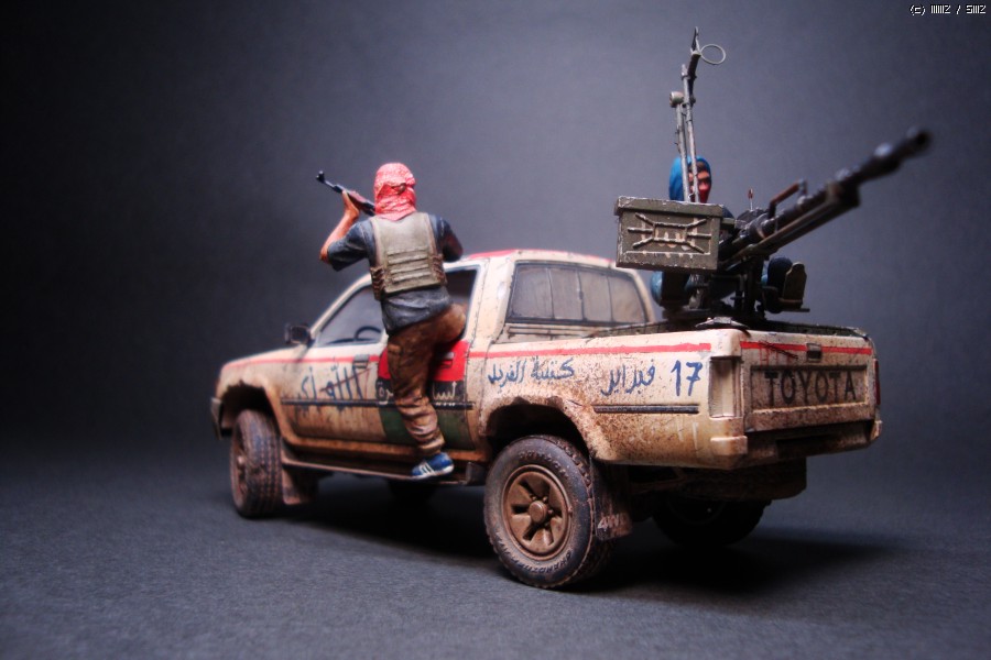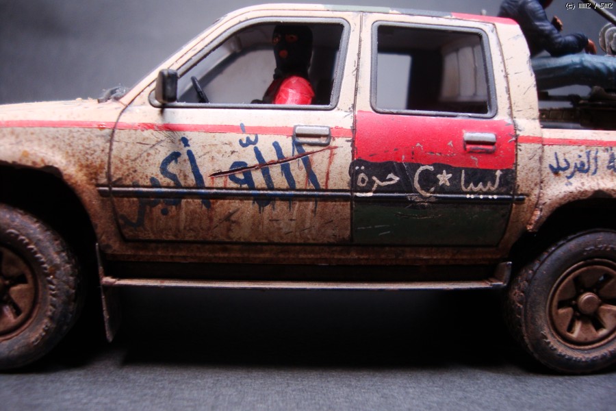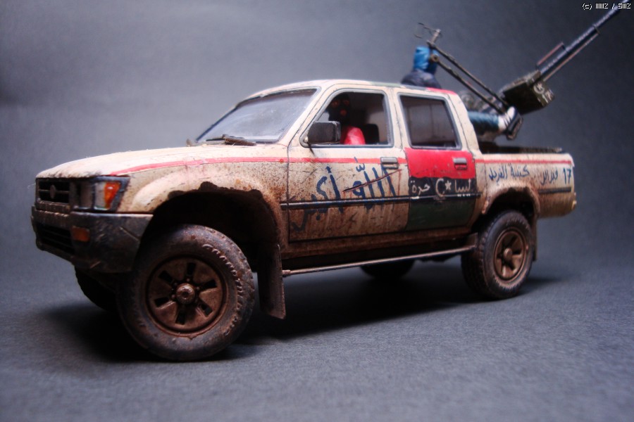 2011년 2월 17일 리비아 벵가지에서 촉발된 리비아 내전에 사용된 토요타 하이럭스 트럭 계열 차량을 재현해 보았습니다.
