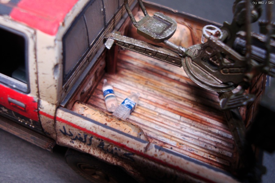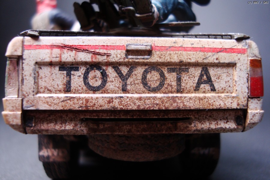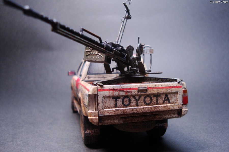 원래 키드는 짐칸을 열어놓고 거기에 14.5mm ZPU-1을 장착하게 되어 있는데 그러면 TOYOTA의 로고가 안보이기 때문에 실제 개조사진들을 보며 대공포를 상향 조정 했습니다. 왜냐하면 "TOYOTA = 테크니컬 트럭" 이라는 이미지가 강하기 때문입니다