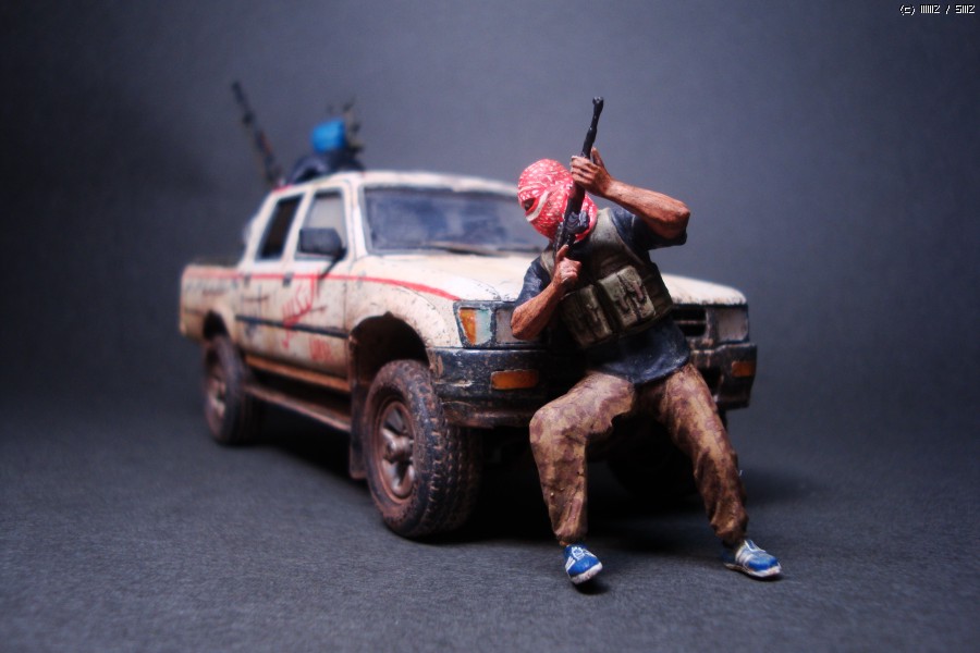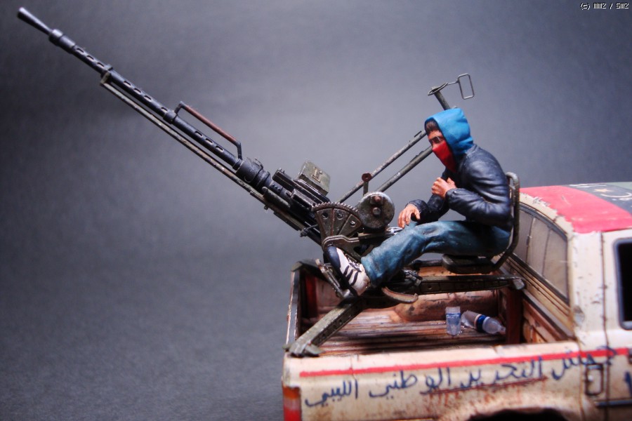 실제로 달리는 차량에서 이자세로 주변경계하는 리비아 시민군의 모습이 있어서 이렇게 개조해 보았습니다. 정말 위험한 자세..