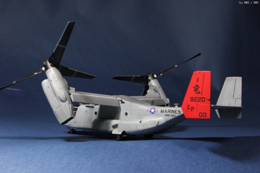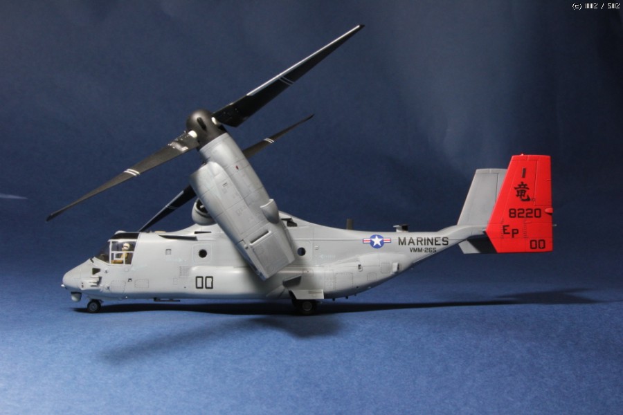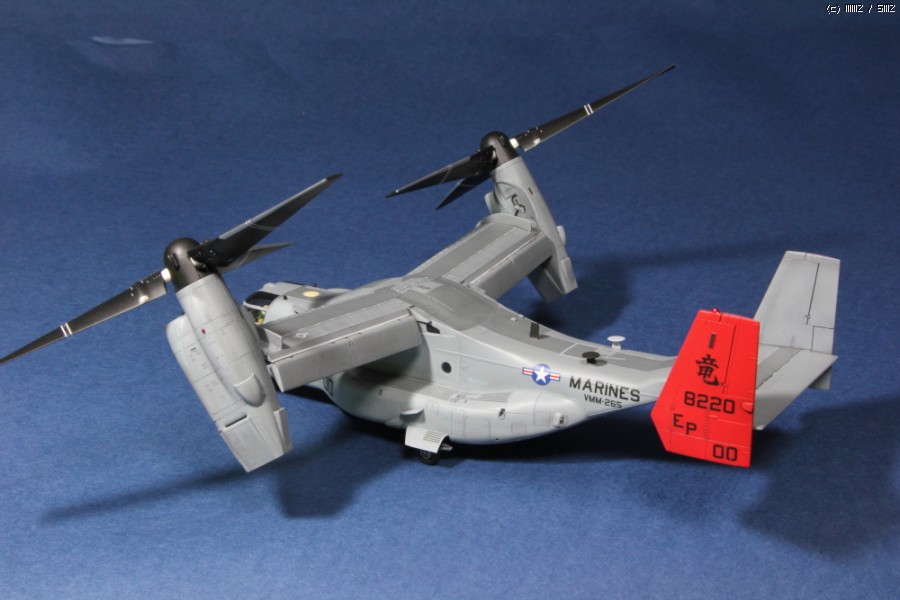 지난 늦여름 발매된 하세가와 1/72 MV-22B 오스프리 해병대 사양입니다. 빨간 꼬리가 돋보이는 오키나와 주둔 미해병대 사양으로 제작했으며 키트 그대로 만든 스트레이트 빌딩입니다. 도색은 군제 락카 307, 308, 337의 지정색을 사용했습니다.