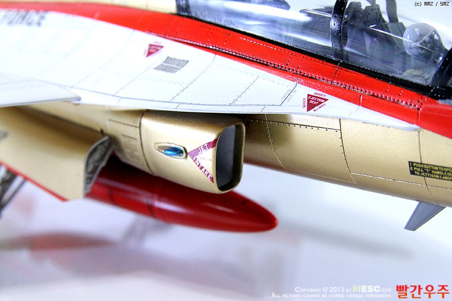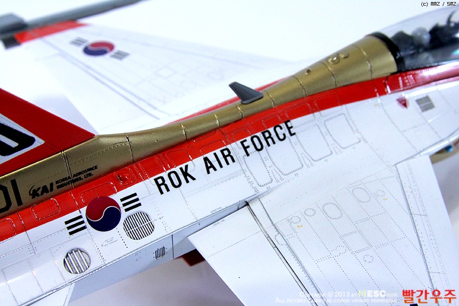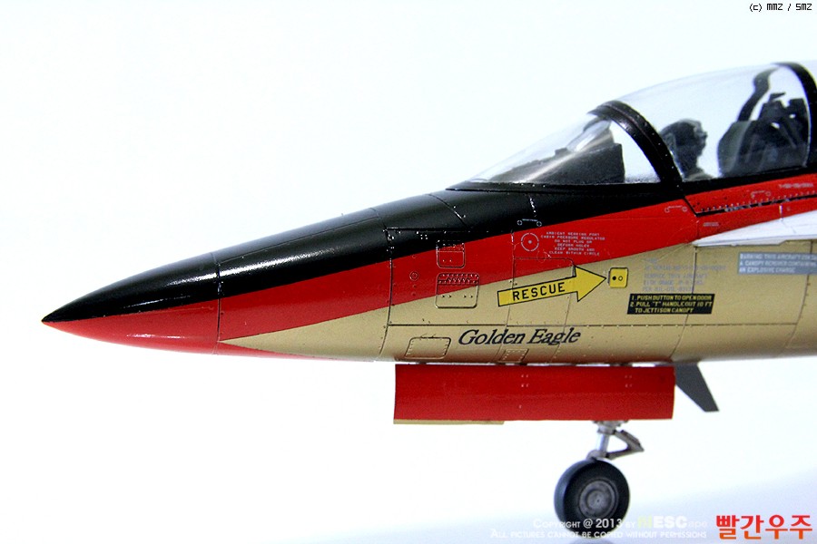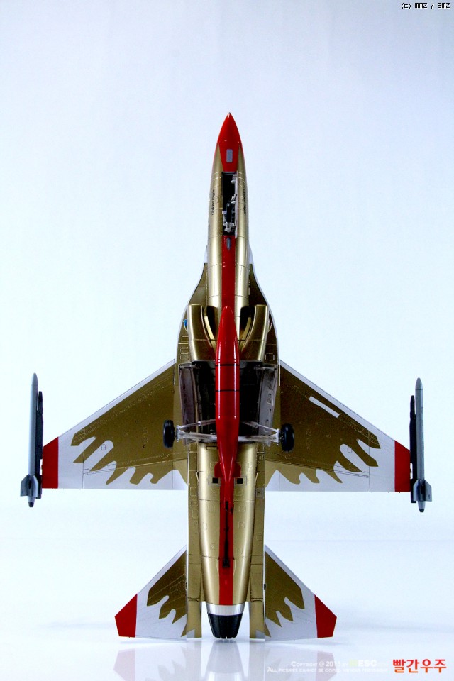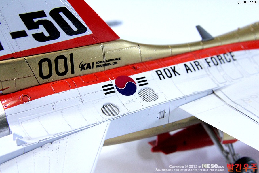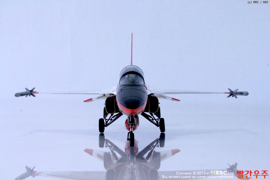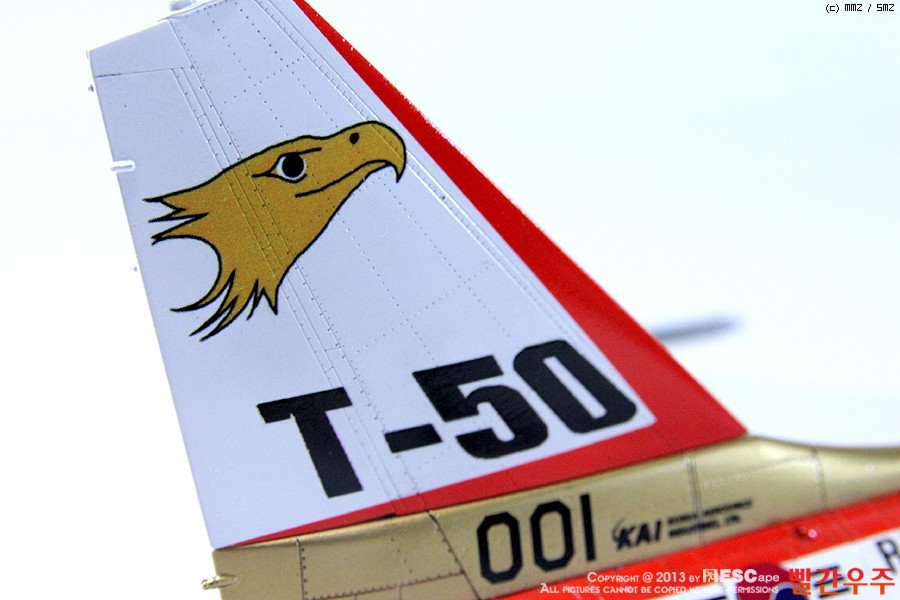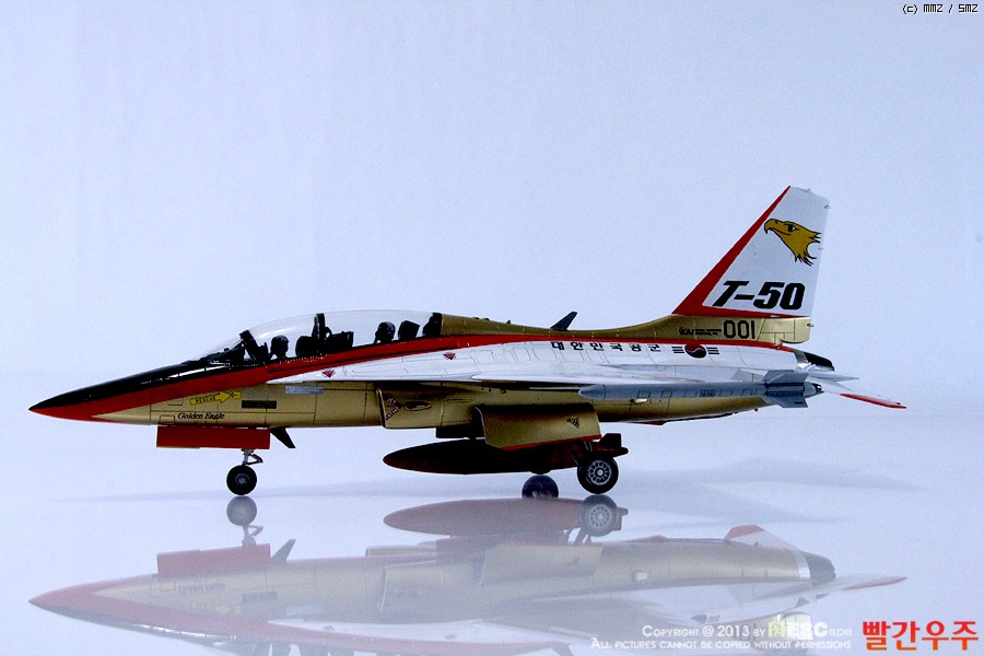 지난번 IPMS 전시회때 출품했었던 T-50 골든이글입니다. 많은 분들께서 이미 제작하신 킷이기도 합니다만, 좀 특이하게 초기형 금색버전으로 도색을 해보았습니다.