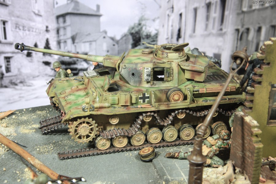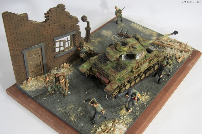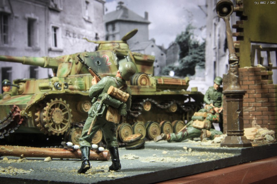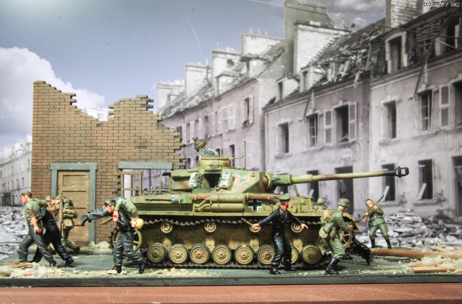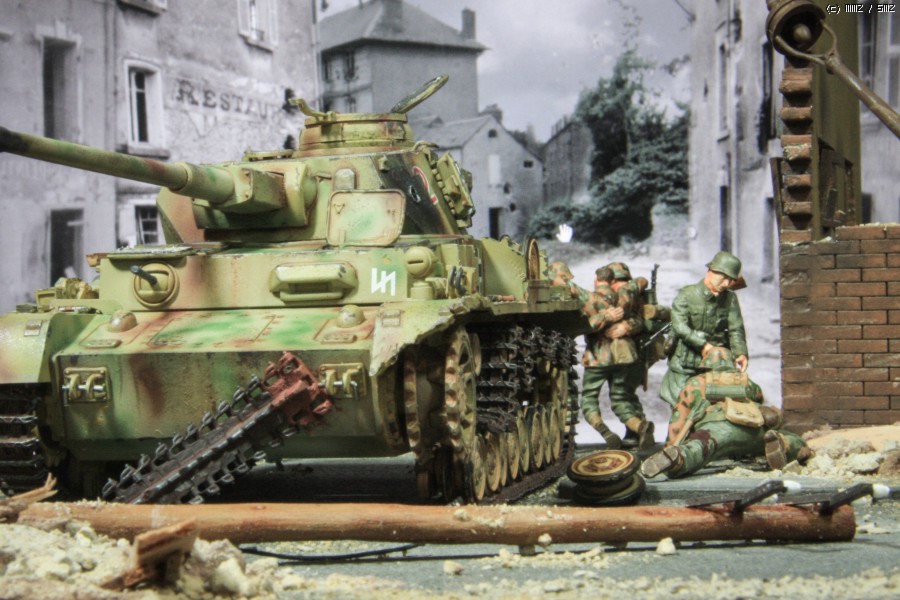 MMZ 모델러 여러분 안녕하세요. 부족하지만 나름 세 번째 디오라마를 완성했습니다. 시가지를 연습할 겸 만들어 보았읍니다. 전차는 아카데미 판저4호이고, 인형은 대부분 마스터박스이고 아카데미에서 징집된 녀석이 한명 있읍니다.