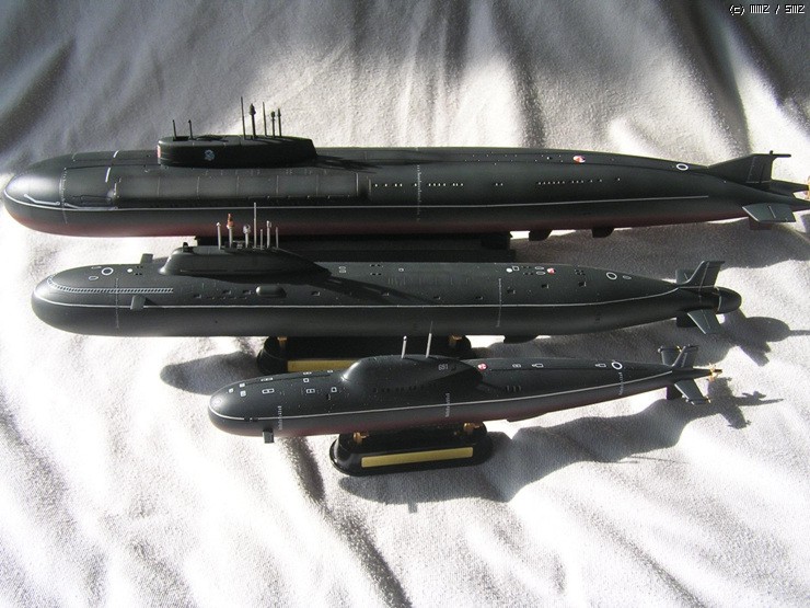 가운데에 있는 야센급이 러시아의 최신 순항미사일탑재 핵잠수함 입니다.
