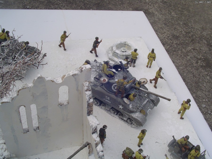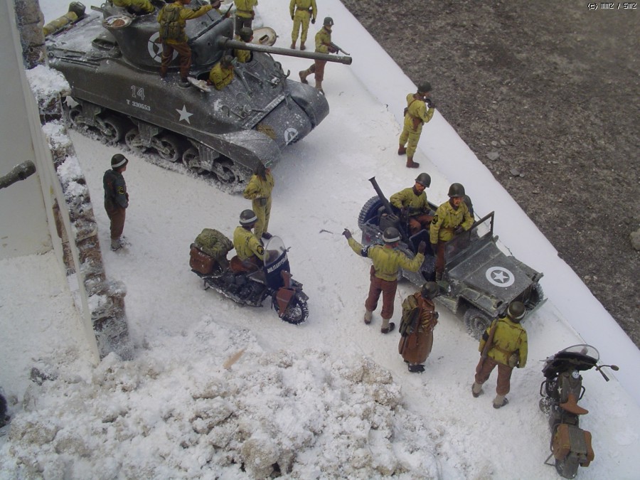 발지 전투 당시 오토스코르제니특수부대가 미군으로 위장해서 미군을 유인하는 작전을 펼치는데 헌병들은 죄다 독일군이고 뒤에 위장판터는 행군중인 미군들이 미쳐 발견 못한 것인데 기습하기 일보 직전의 상황 입니다