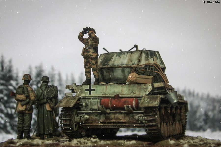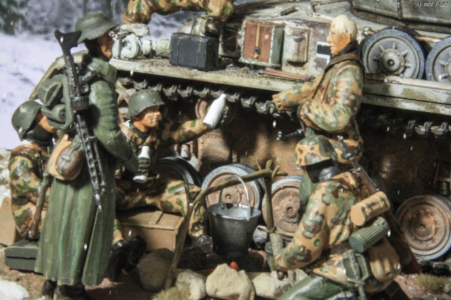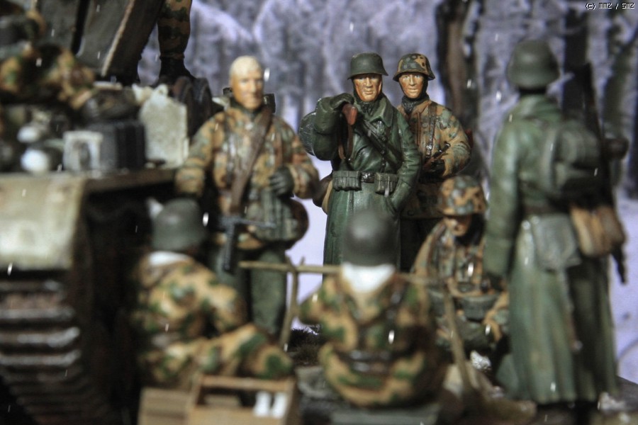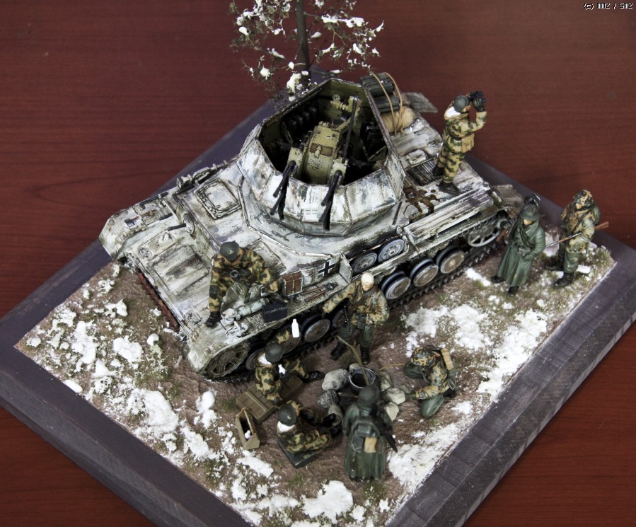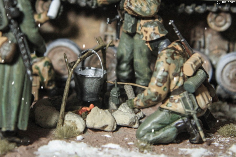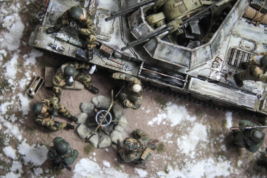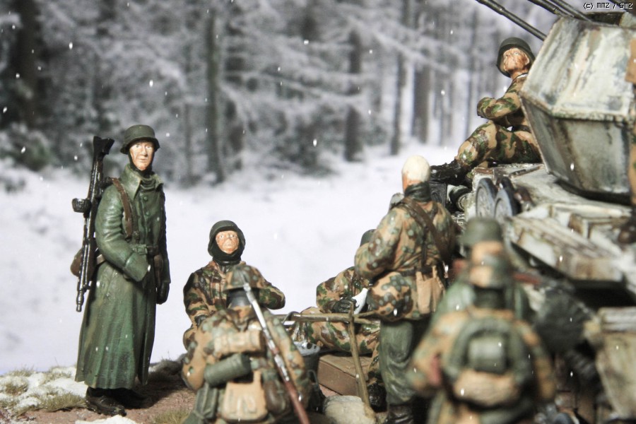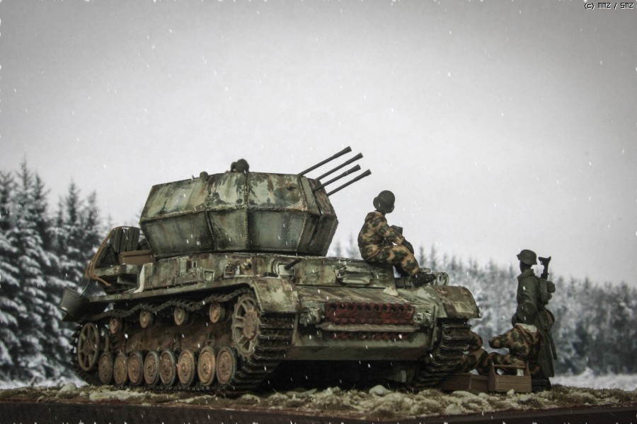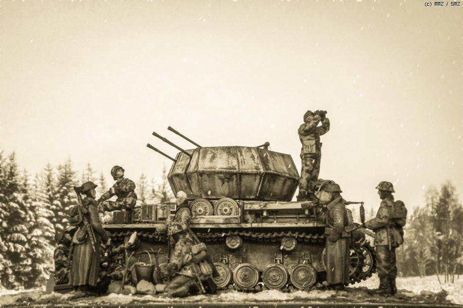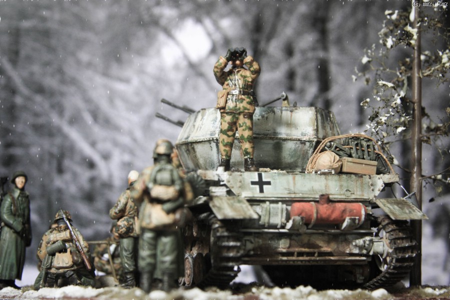 지난 주에 만들어 올렸던 아카데미 Flakpanzer IV Wirbelwind 동계 위장 버전을 이용해 간단한 디오라마를 만들었읍니다. 소품은 여기저기 다른 제품도 있기는 하지만, 키트에 포함된 인형과 더불어 군인은 모두 아카데미제로 구성했읍니다. 비르벨빈트 사진은 지난 주에 올렸기에 디오라마를 중심으로 사진을 구성했읍니다. 배경지 대신 모니터 화면을 배경으로 사용 했고, 사진의 전반적인 톤 조정과 함께 포토샵에서 눈오는 효과를 주었습니다.