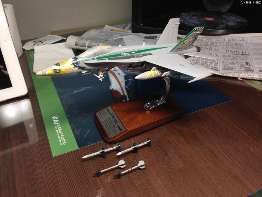 사이드와인더 두 발, 스패로우 두 발, 연료탱크 두 개를 달아주었습니다.