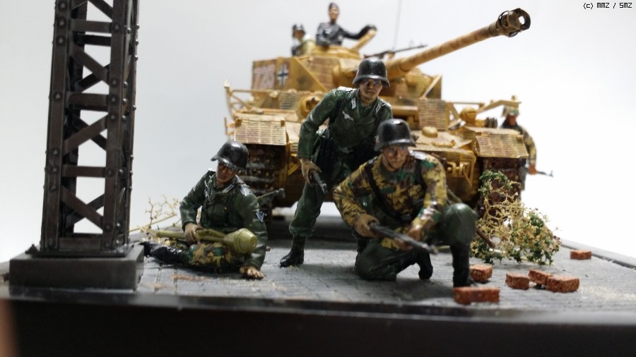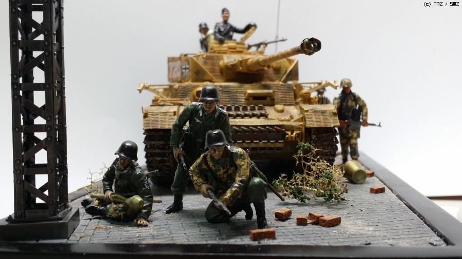 4호전차를 중심으로 인형을 배치하면서 긴장감을 표현했습니다.