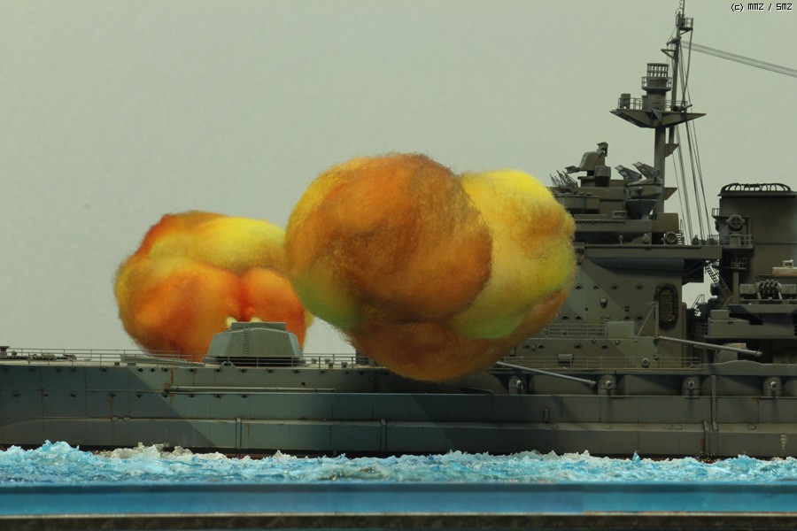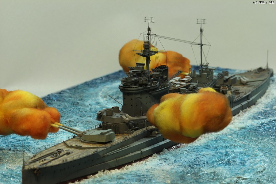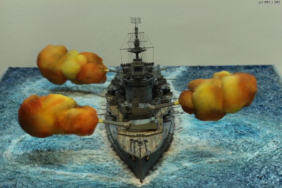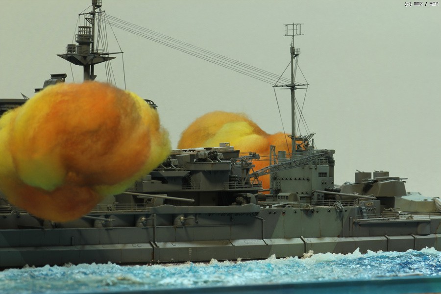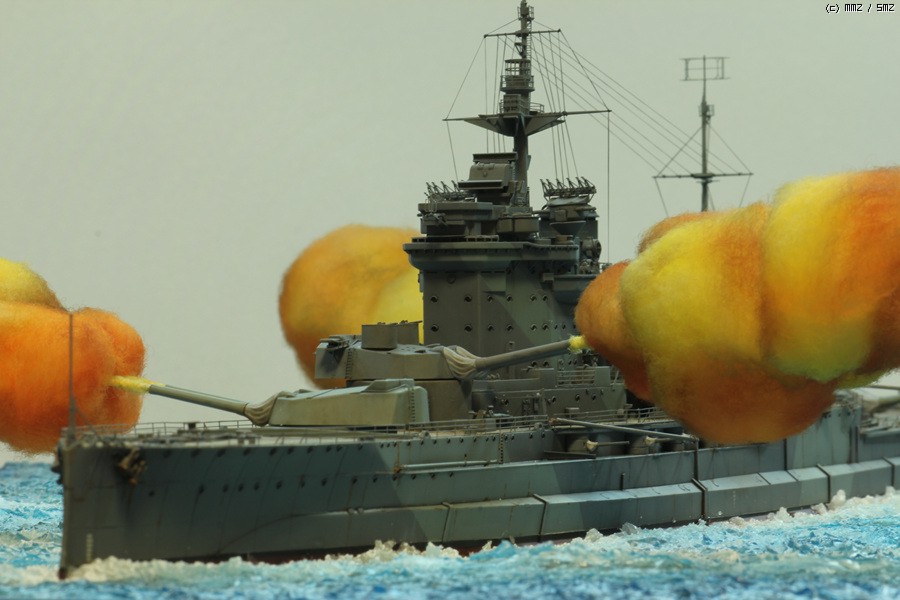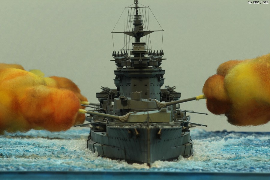 최근에 완성 사진 올렸었던 1/350 warspite를 이용하여 함포사격 장면을 제작해 보았습니다.