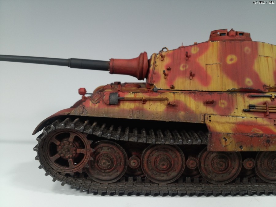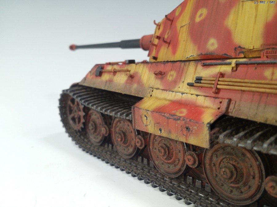 대충보면 일반헌셀형이랑 별차이없는데 일체형 포방패와 가이드혼이 트랙마다 있는 특이한 티거2입니다.