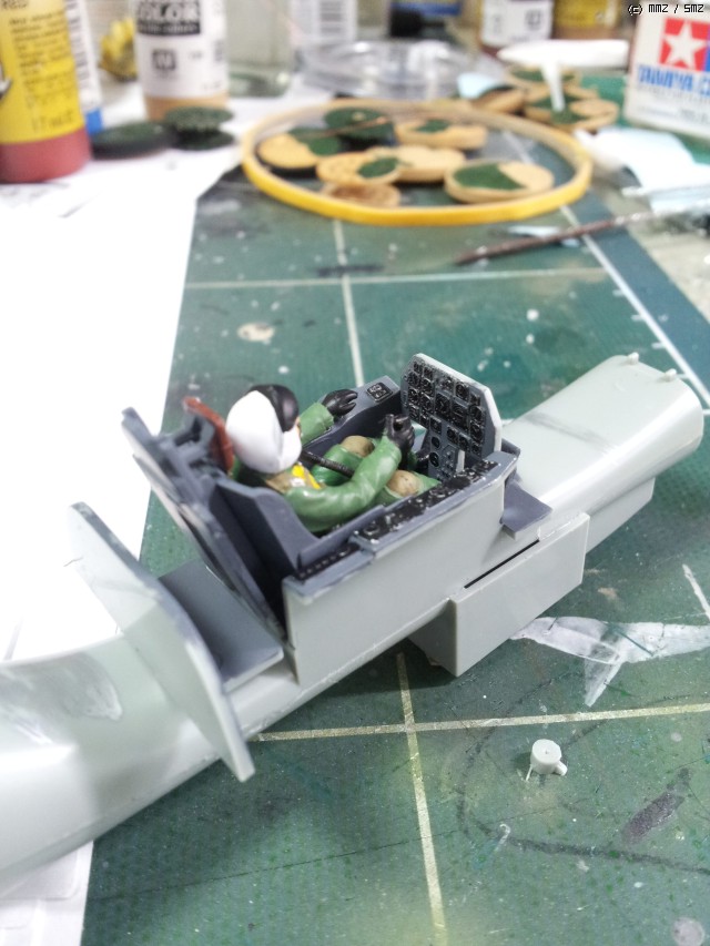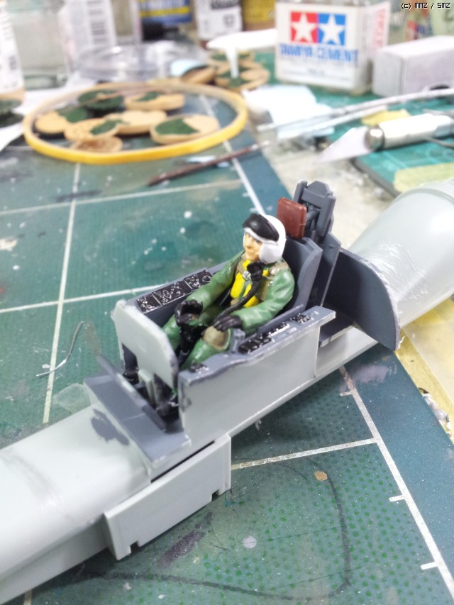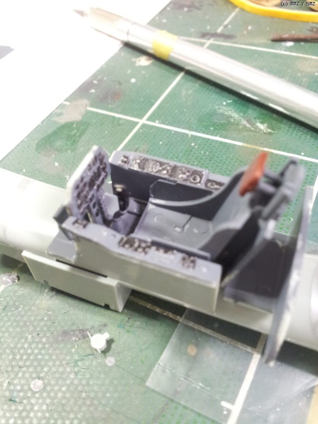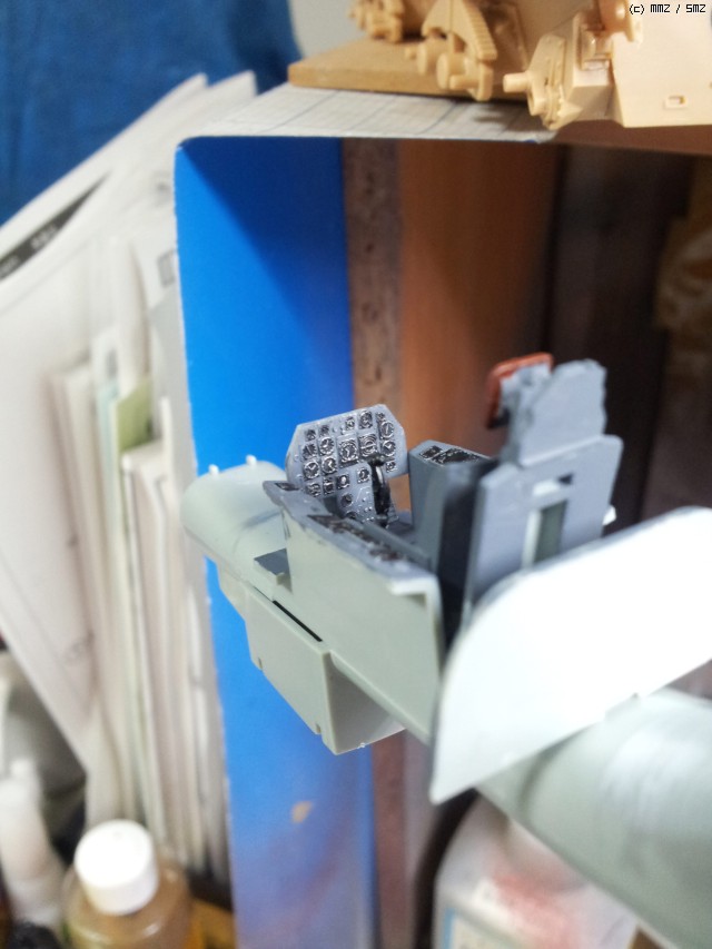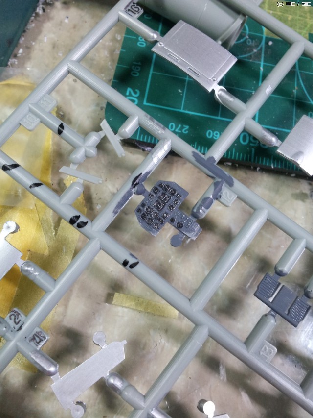 조종석 패널 : 회색(바예호 조색) 칠하고, 검은색 칠하고, 은색으로 드라이 브러싱기법