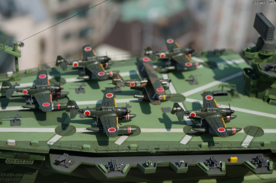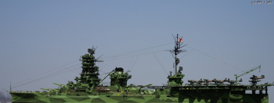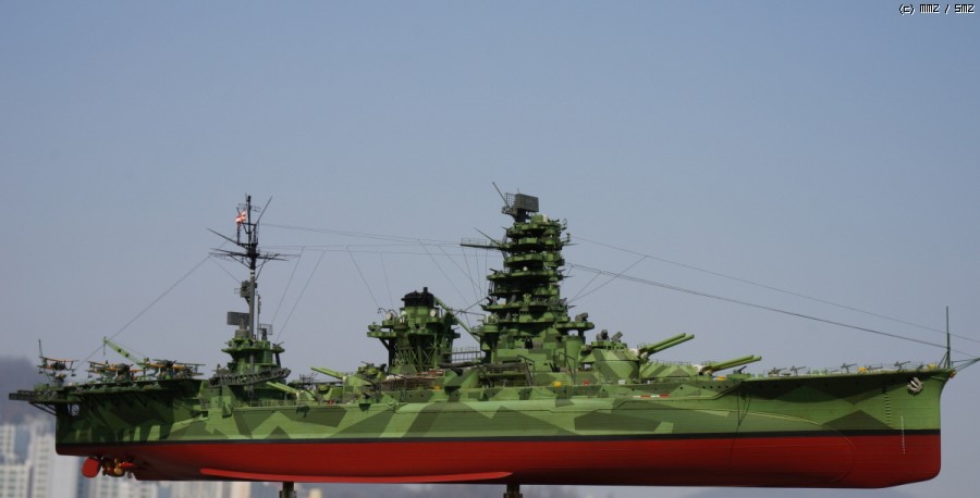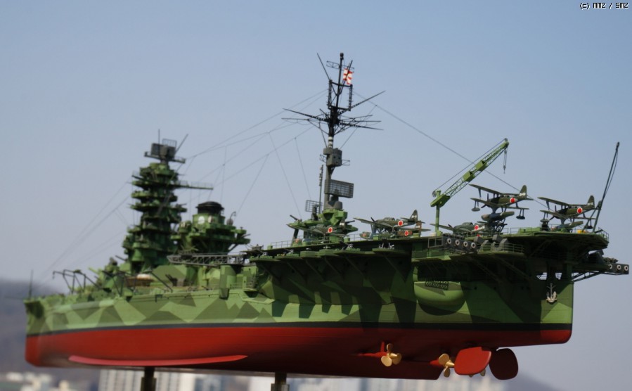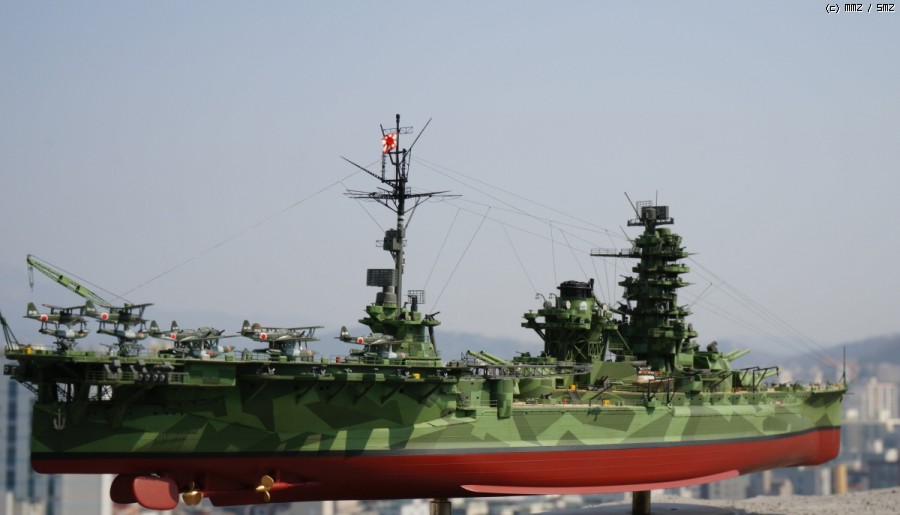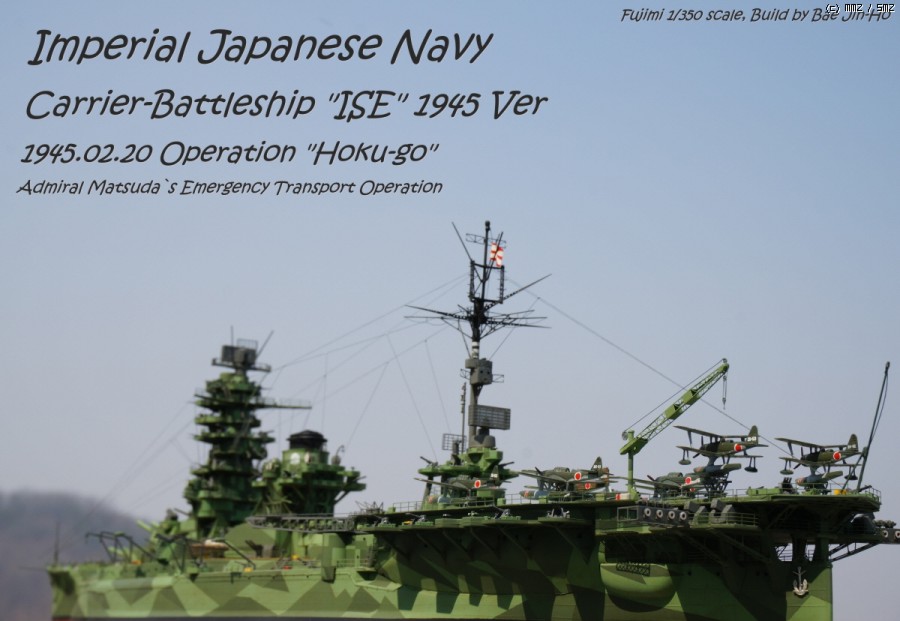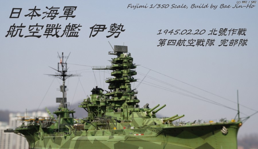 당초 의도는 44년 말~~45년 초 남방에서 일본 본토로 긴급운송 작전이었던 북호작전시 제4항전 완부대의 이세-휴가를 페어로 만들어 보고 싶어 시작한 키트인데, 역시 시간이 없어 포기하고 예전 기리시마(...)에 이어 아무도 안 할거 같은 일본군 외현 21-22호 위장 미채의 변용으로 전탐도 덕지 덕지 붙여 만든(...) 뱁니다.