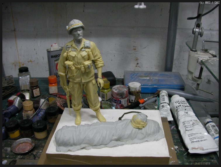 아래 전사한 전우또한 기본스티로폼 베이스 조각후 에폭시 퍼티로 완성했습니다