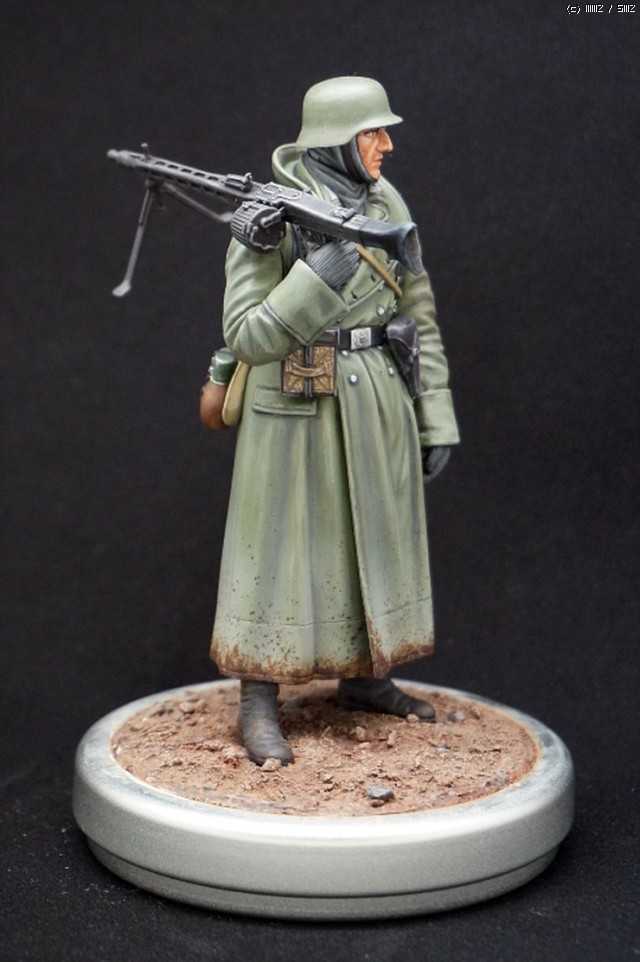 타미야의 1/16 인젝션 시리즈 중 하나인 독일군 기관총수로 동부전선의 오버코트를 입고 있는