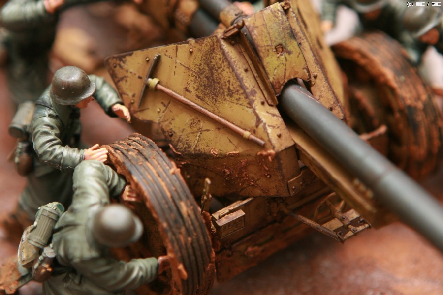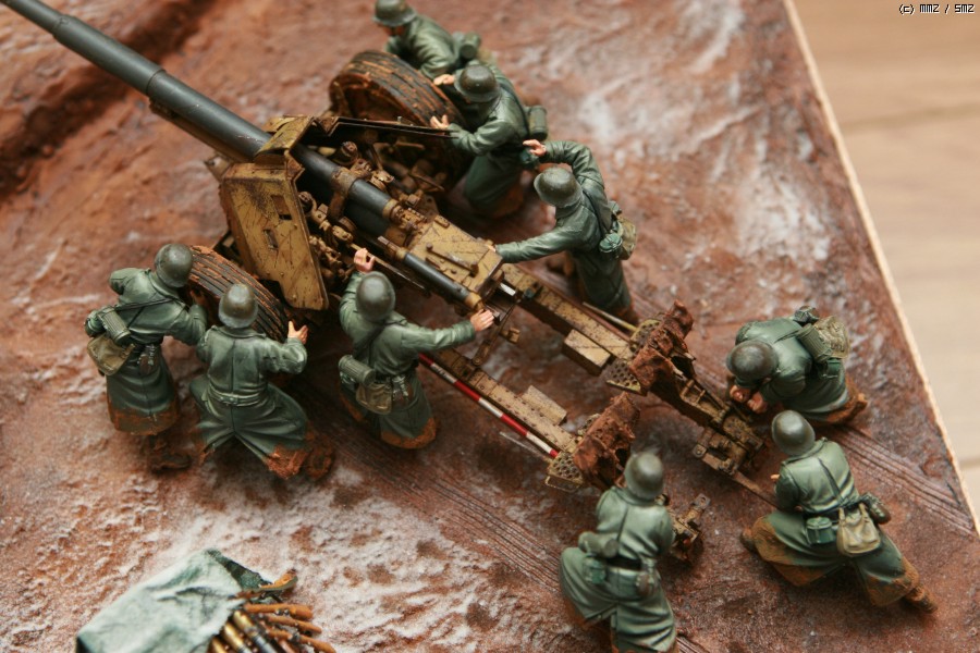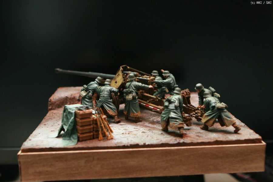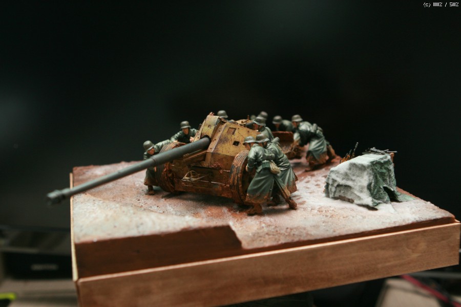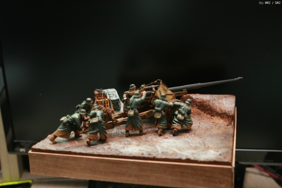 안녕하세요. 김성우입니다. AFV클럽의 88mm 대전차포입니다. 인형은 이 키트에 맞춰 발매된 하비보스의 포병세트를 작은 베이스에 올려 봤습니다. 키트를 분양 해 주신 분이 눈이 살짝 온 진창으로 만들어 줄것을 부탁하여 최대한 컨셉을 맞춰 보도록 했습니다만, 더이상은 실력의 한계로 더이상 표현 하지 못했네요... 감사합니다.