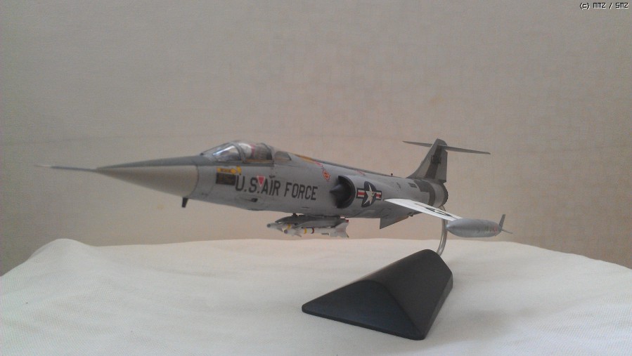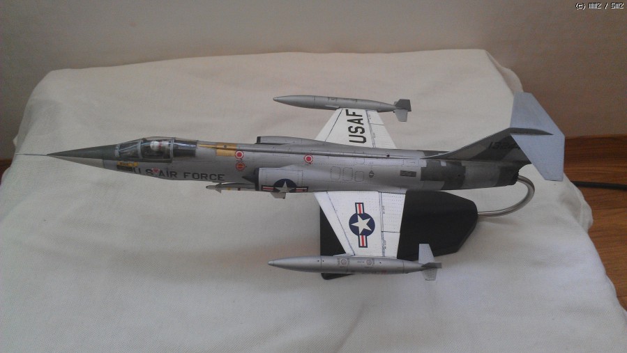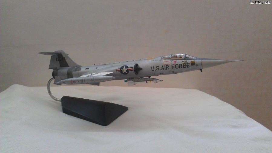1/48 하세가와 F-104G 입니다. 제목에 독일공군이라고 되어 있는데 모형은 미공군마크라 황당해 하실수 있는데 독일공군 맞습니다. 미공군 루크기지에 독일공군조종사 F-104 전환훈련을 위해 배속된 기체입니다. 기체번호는 63-13244(독일 20+22, 대만 4369)으로 루크기지에서 전환훈련으로 사용되어지다가 대만공군으로 팔린기체입니다. 기체넘버 결정할 때 63-13240,42,43,44,45,46,47 번기 중에 하나를 고를때 대만공군소속일때 미사일 발사장면이 있어 63-13244번으로 결정 했습니다. 근데 넘버를 고를 때 기체 이력을 보니 63-13240,42번기만 수명다해 퇴역하고 나머지는 과부제조기 답게 추락사고로 생을 마감했습니다.(63-13241 확인안됨)