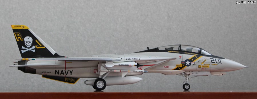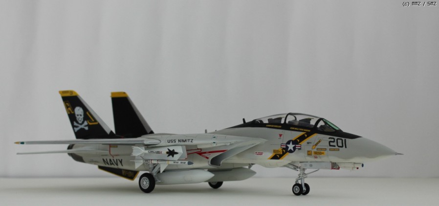 따로 구입해 둔 이탈레리 F-14A 형의 졸리로저스 데칼을 적용한 하이비지 도색으로