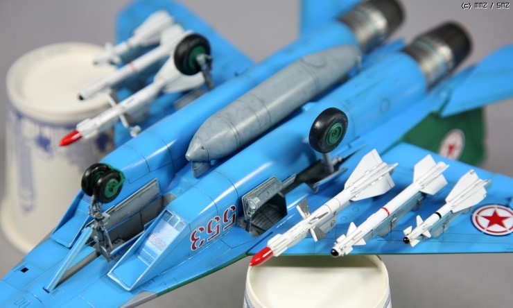 이번작업은 북한공군 미그29입니다..얼마전까지 폐쇄적인 북한의 특성때문에 첨단기체는 아니지만 북한이 보유하고 있는 기체들의 정확한 모습이나 컬러스킴 모두가 비밀스러웠던 것이 사실입니다..그러다보니 모두 추측성 도색과 상상의 기체들을 모델러들이 만들었었지요..하지만 김정은이가 대단한 기체인듯 찍은 사진에 나타난 미그29는 기대 이하의 모습을 보였습니다...머 그래도 궁금증은 풀렸습니다..ㅎㅎ 돼지와 방수컬러...어울리는 모습입니다...어찌됐던 한국공군시리즈의 대치 기체인 북한공군기...슬로건은 "적기를 알자"입니다...모노키오에서는 그동안 북한공군기 데칼로는 미그21은 있었지만 라인업 차원에서 이번에 개발했습니다...여러가지 정치적으로 민감한 시기이지만 모형적 해석을 통해 개발하고 이번에 제작해보았습니다. 전체적인 녹색은 사진과 지정색을 조색해서 나름 느낌을 내보았습니다. 그럼 사진 나갑니다.