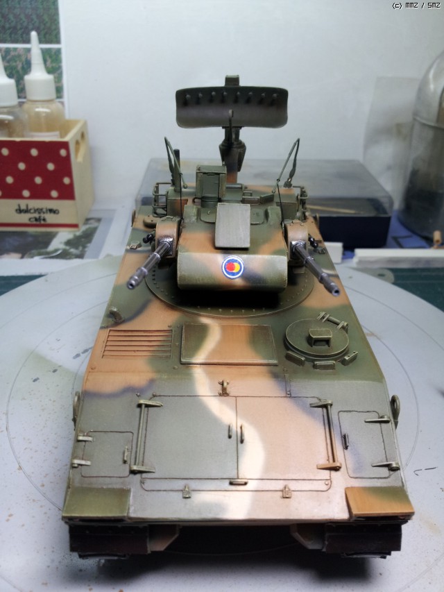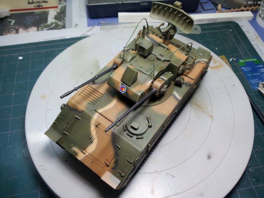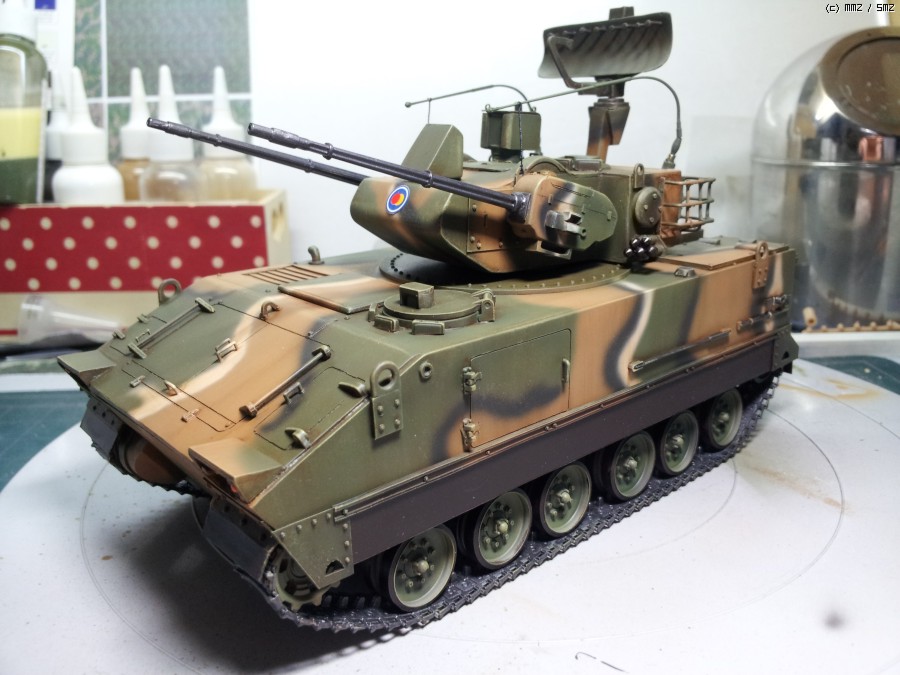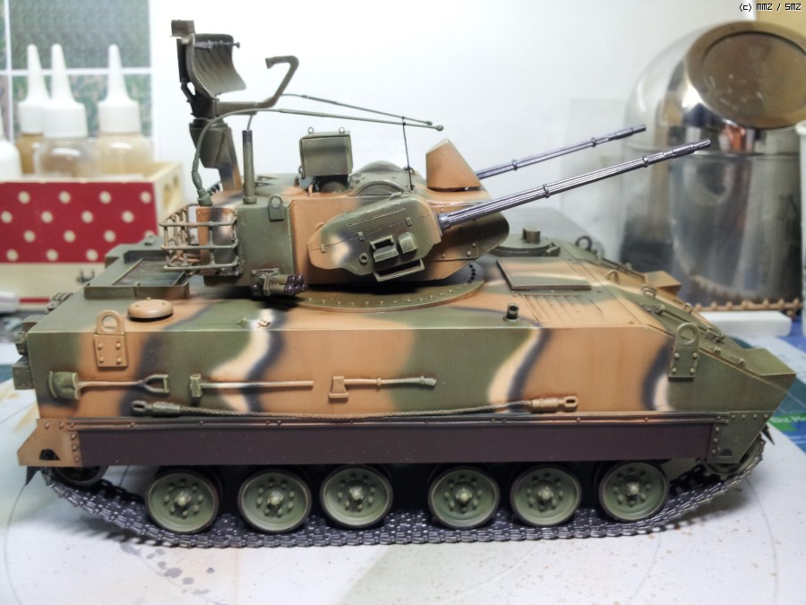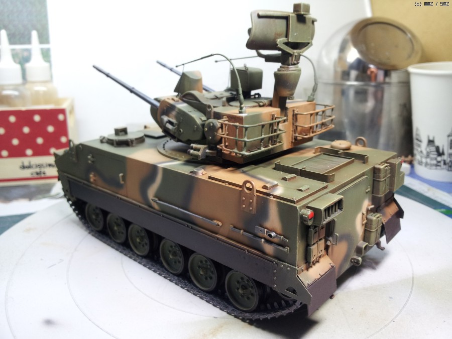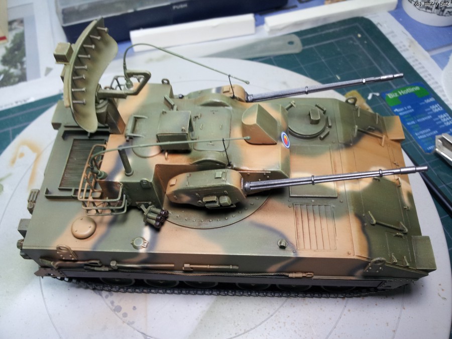 비호 상부는 아크릴판과 프라봉을 사용하여 자작하였고 총신과 레이더는 타미아의 독일 게파드 부품을 채용해와서 수정작업을 하여 붙여주었습니다.