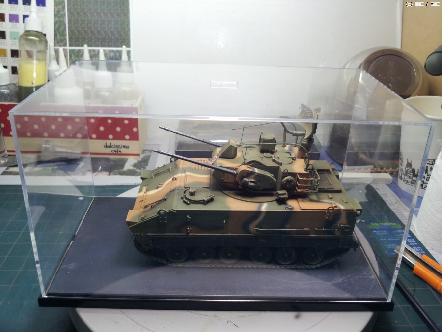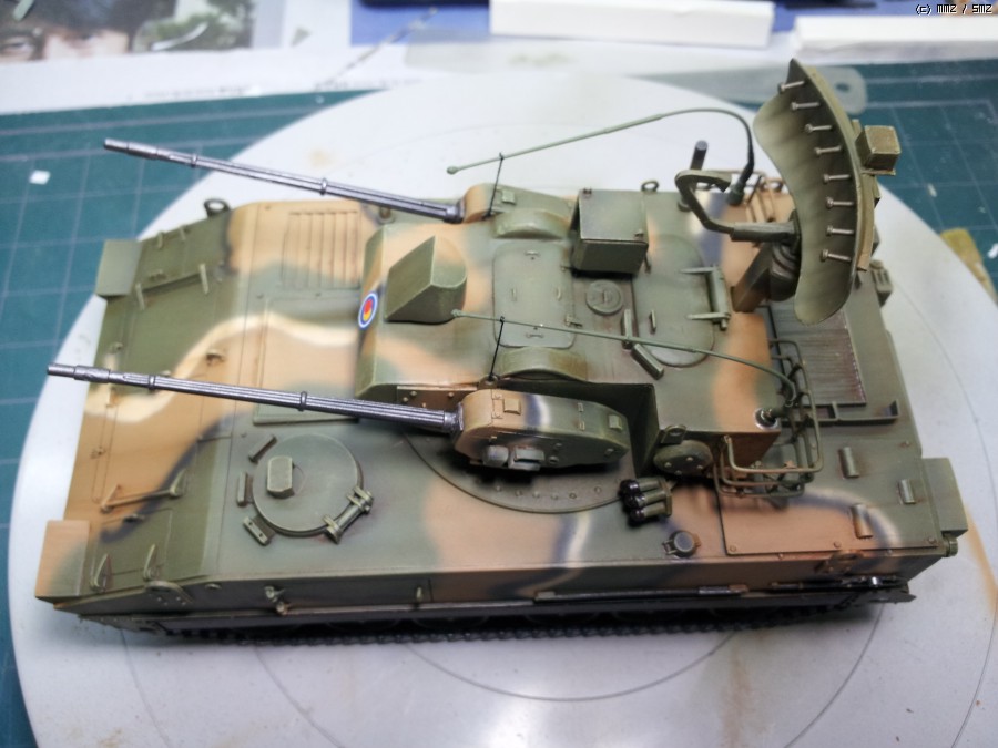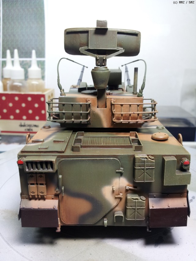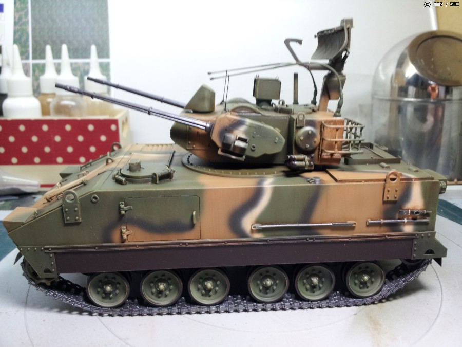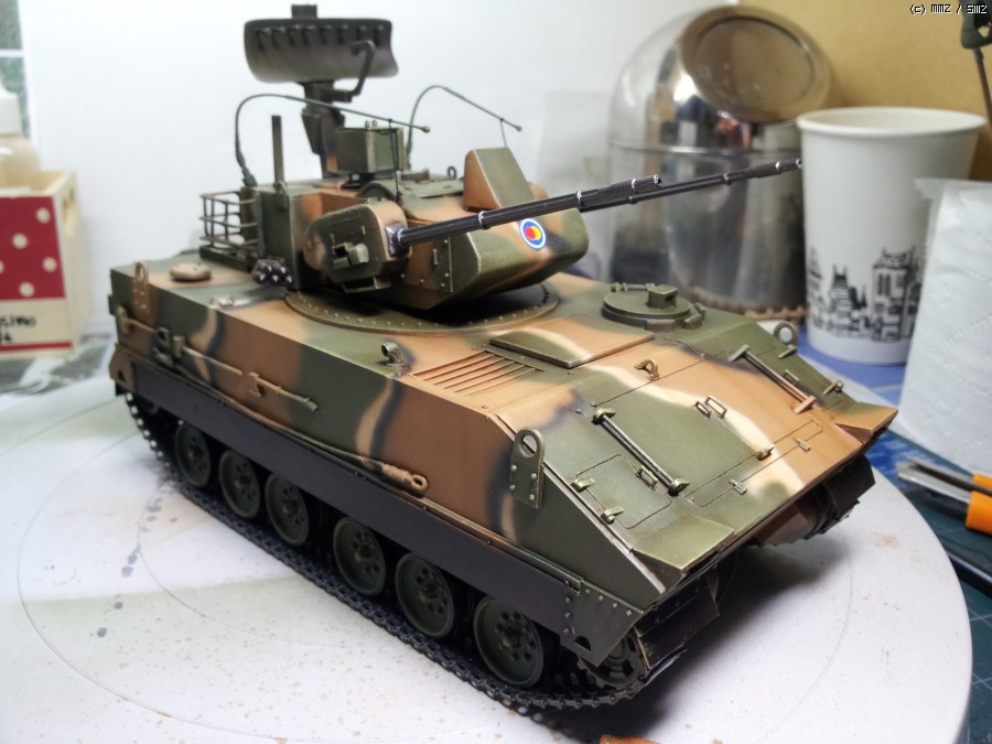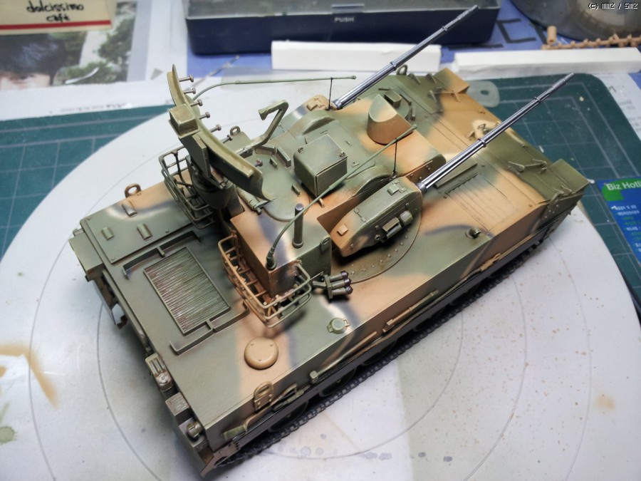 비호 상부는 아크릴판과 프라봉을 사용하여 자작하였고 총신과 레이더는 타미아의 독일 게파드 부품을 채용해와서 수정작업을 하여 붙여주었습니다.