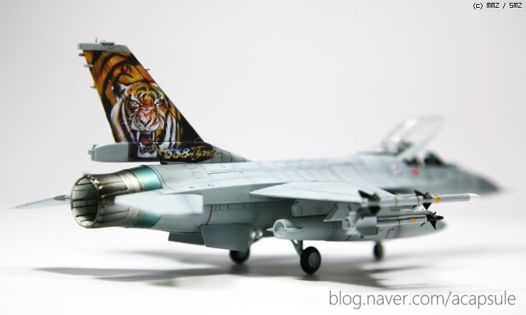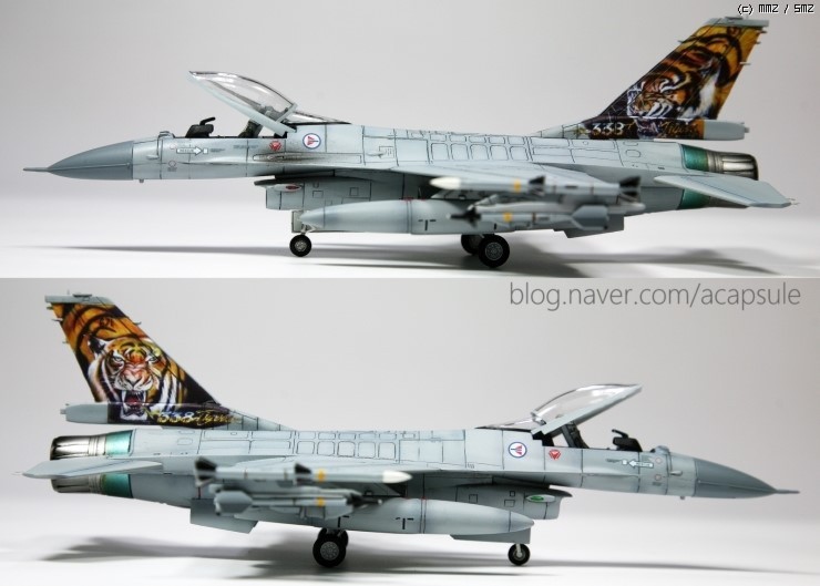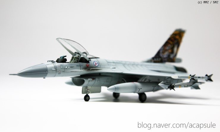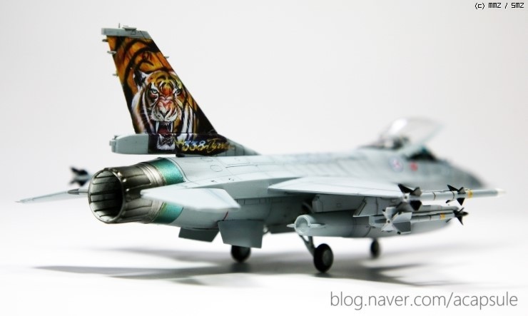 이번작업은 오랜만에 작은 스케일작업입니다..미공군이나 한국공군이 아닌 노르웨이공군의 타이거미트 작업입니다...타이거미트 언젠가는 작업해봐야지 했는데 결국 72로 먼저작업하게되네요..카페 플첵으로 72 F-16를 제작하려고 아카데미,이탈레리,타미야,하비보스 등등 여러대의 키트를 놓고 고민하다가 데칼때문에 하비보스로 작업했는데 결국 여러군데 디테일업---->자작 하게됩니다...민짜 콕핏이라 사출시트 자작해서 넣고 패널라인이 약해서 전체 엔그레이빙하고 사포질에 부분 잔손이 많이 갑니다...만들고도 세세한 부분이 두꺼워 디테일감이 떨어지네요...ㅜㅜ 그냥 타미야제로 만들걸 그랬나합니다...하여튼 다음 기회에 48 타이거미트 한대 더 제작해보려합니다...^^