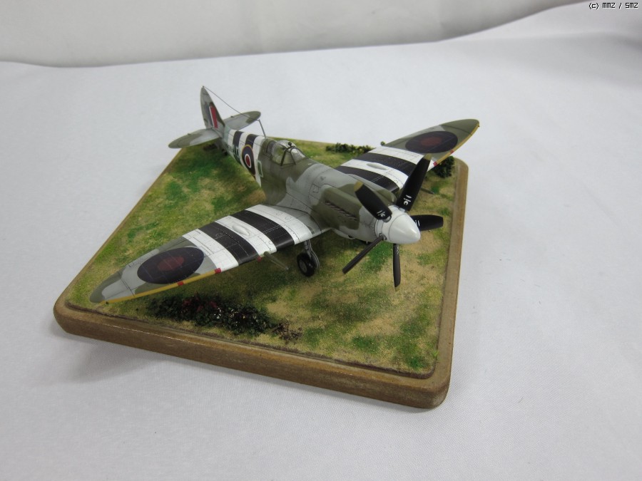 전체적으로 리벳작업하고 동체/날개부분 데칼이 잘안맞아 스텐실작업햇습니다. 깔끔하게 표현하고자 웨더링은 거의 안하고 먹선,리벳 표현만 했습니다. 어딘가 허전해보여 베이스는 급조해서...