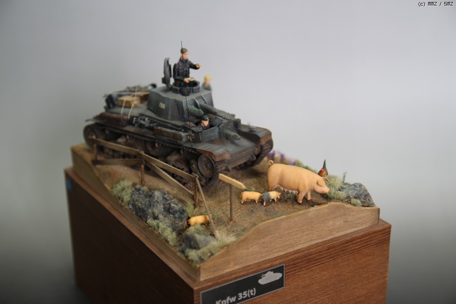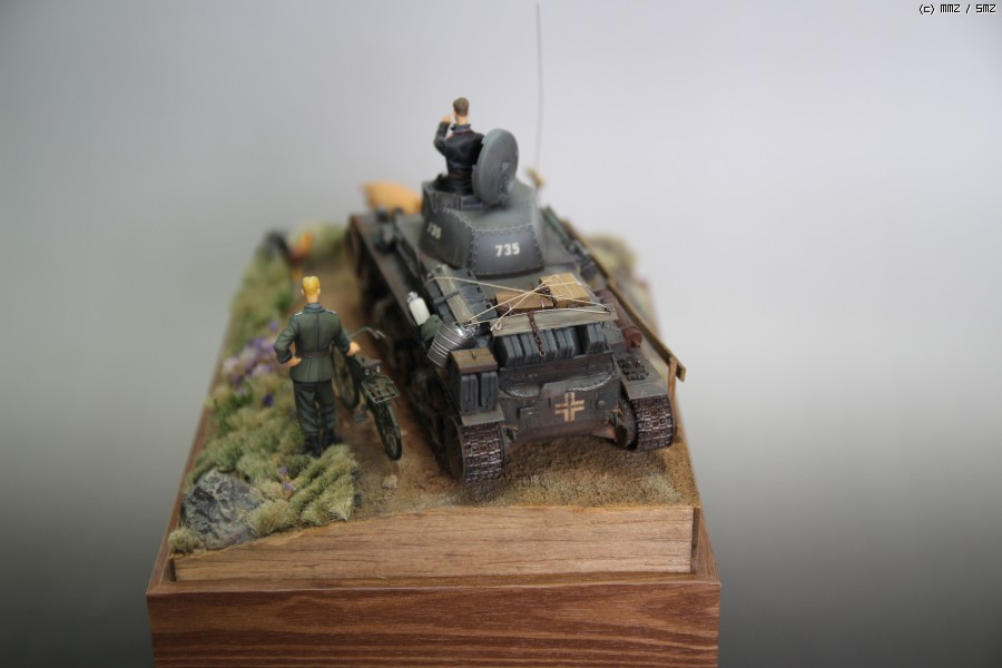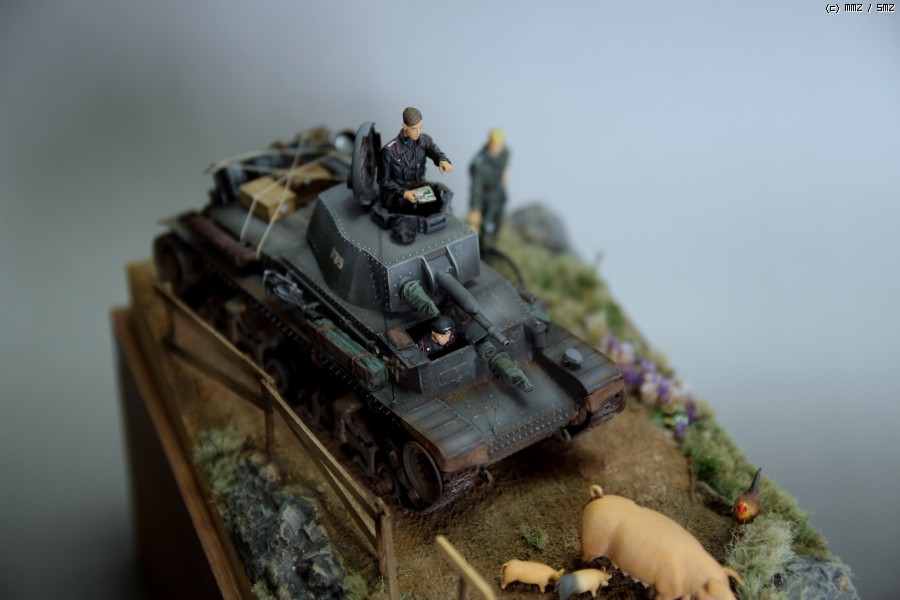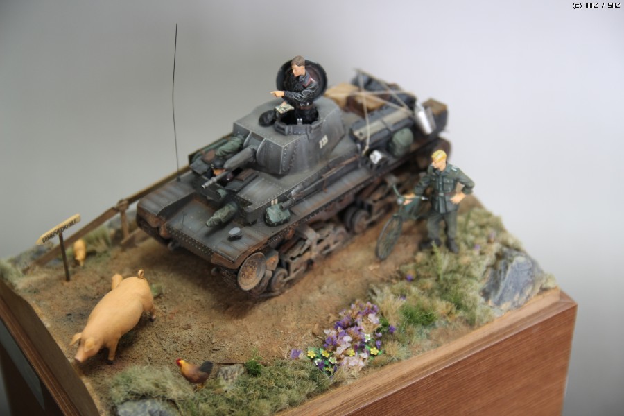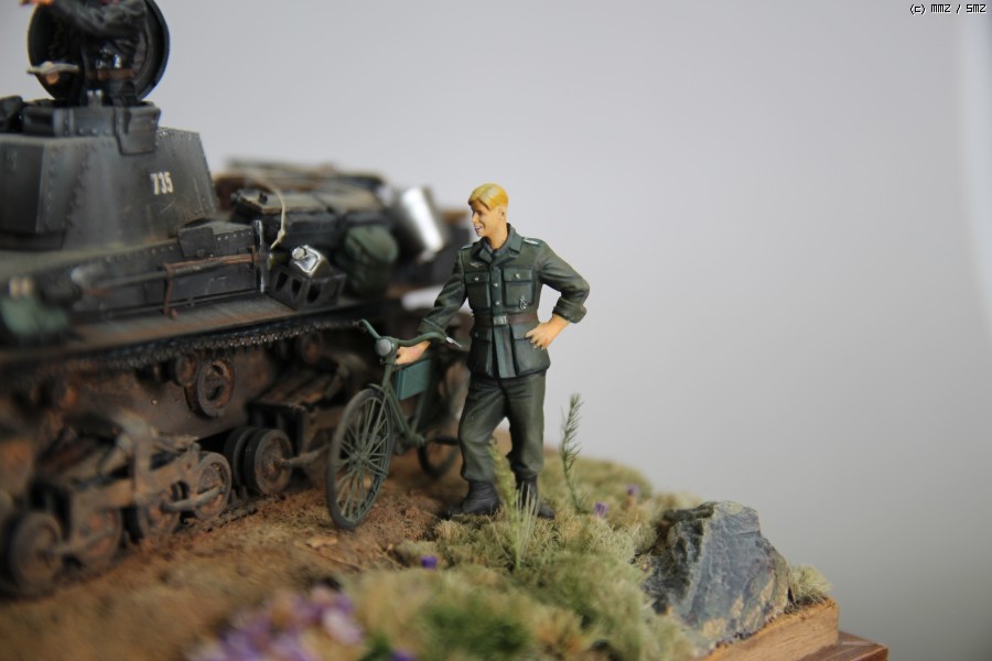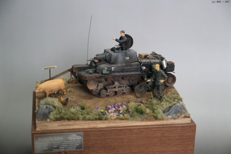아카데미 35t 와 DEF디테일업킷을 사용하였고 자전거와 독일군은 타미야 제품에 보이져 디테일업셋을 적용시키고 머리는 호넷제품으로 바꿨습니다. 전차병은.. 사은품으로 받은건데 어디제품인지는 잘 모르겠네요.. 운전병은 아카데미 인형에 머리만 레젼드껄로 바꿨습니다.