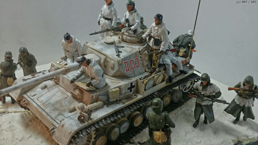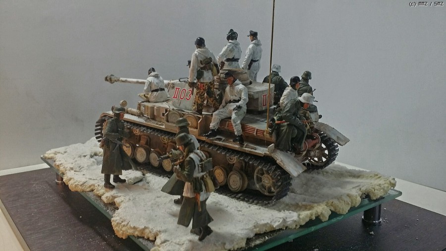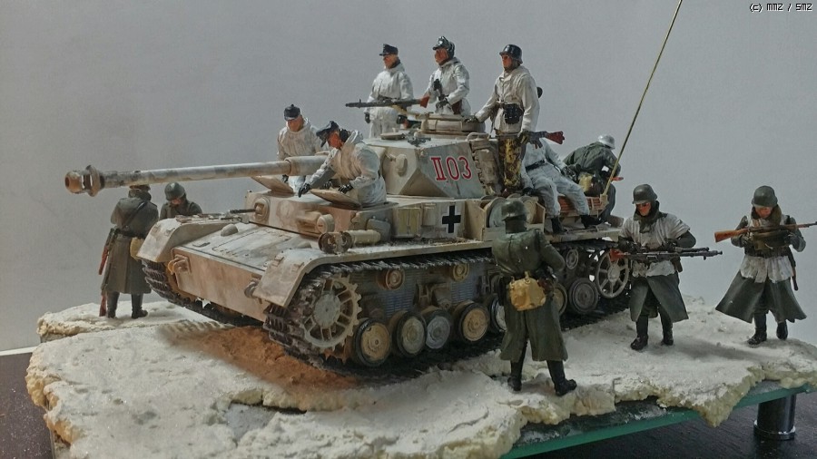 아카데미 4호전차와 카이젠의 빈터케텐(동계용 궤도) 드래곤 마스터박스 미니아트 트라이스타의 인형을 세웠습니다 배경은 베이킹 파우더와 눈표현재를 썼습니다