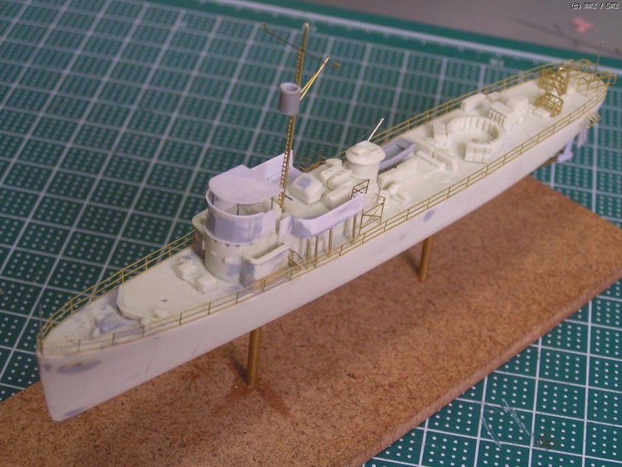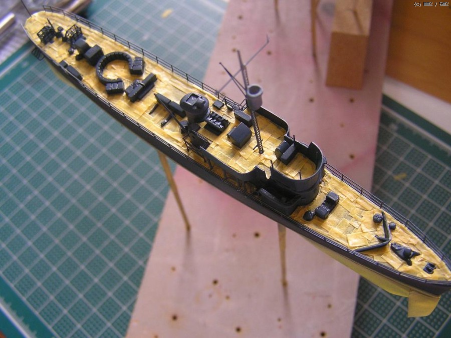 키트에 상부 구조물이 없으므로 플라판으로 자작(이 PC시리즈에 상부구조물로 난간만 있는 경우도 있어 키트가 틀린건 아님) 그외 일부 수정
