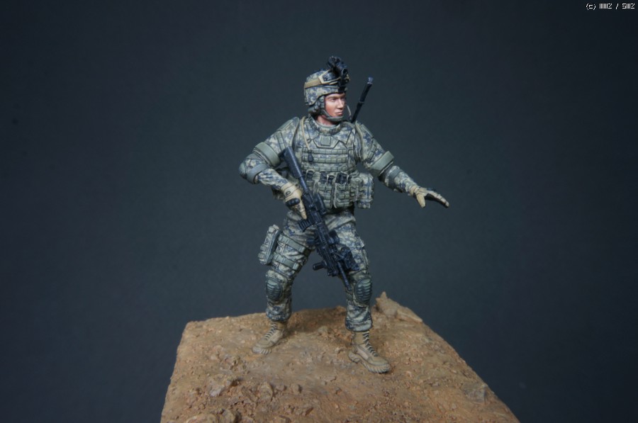 라이브 레진사의 1/35 현용미군 피규어로 35002번을 베이스로 35003번 헤드만 차용하였습니다.