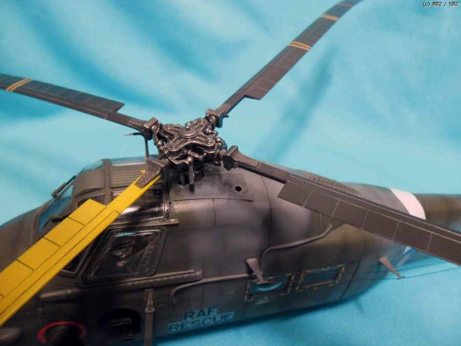 메인로터 중 하나의 블레이드는 외국 작례사진을 보고 황색으로 칠했고 테일로터의 마킹은 잘라놓은 데칼에