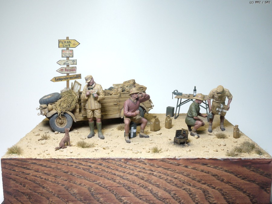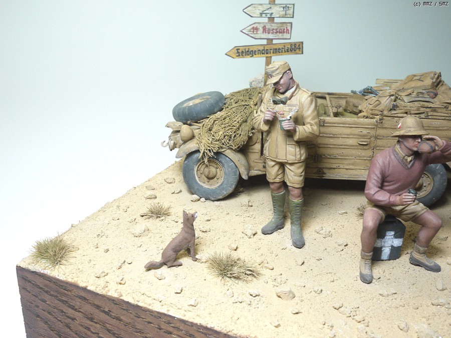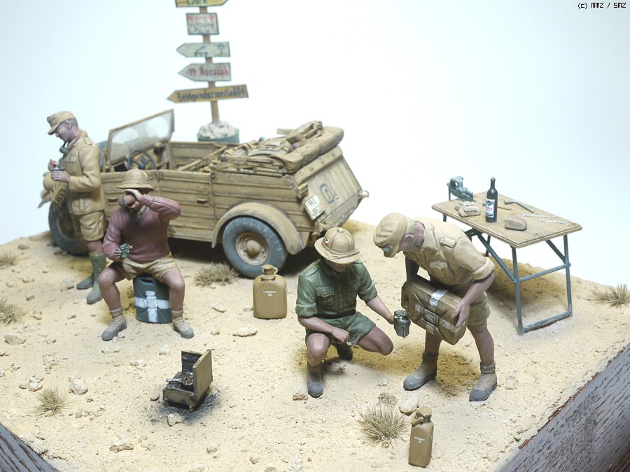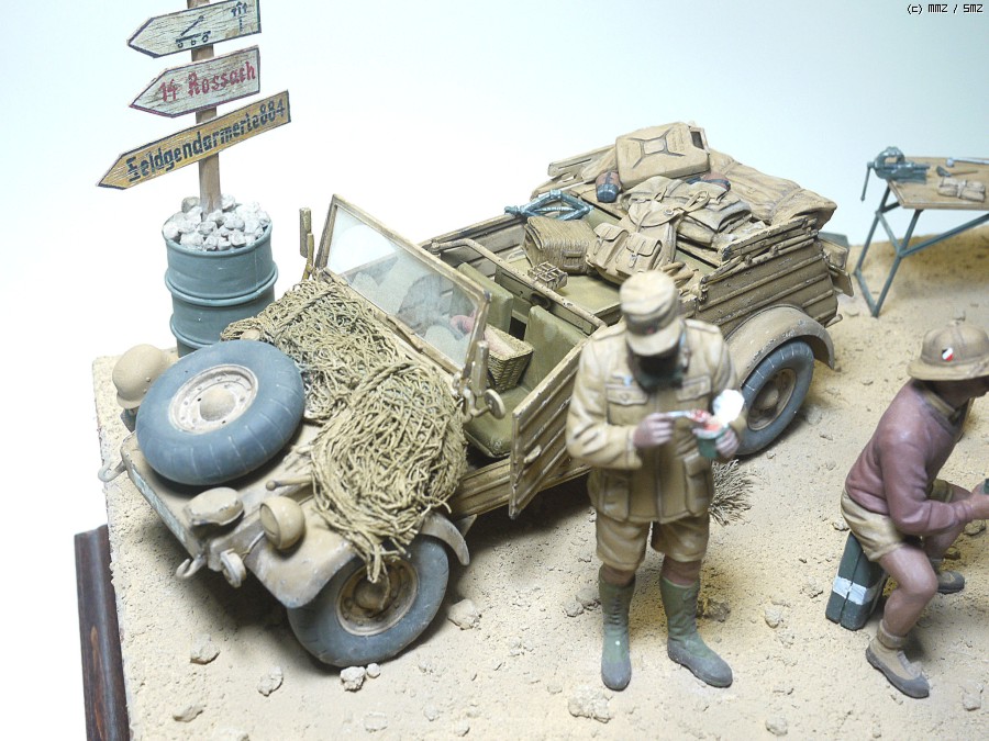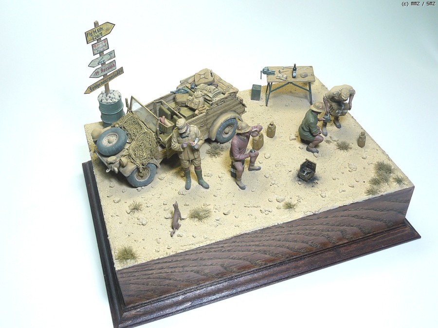 북아프리카 독일군을 이용한 간단한 비넷을 하나 만들어 보았습니다. 다들 아시는 드래곤 제품이구요. 그냥 컬렉션이 목적이다보니 특별한 창작은 없고 박스아트에 가깝게 연출해 보았습니다. 퀴벨바겐은 MMZ회원님이 만드신 서페이서까지 올려진 조립품을 분양받아 도색만 하였습니다. 너무 편하게 제작했네요.^^;; (분양해주신 회원님께 감사 드립니다.) 생업에 매진하랴 아이들과도 즐거운 시간 보내랴...작품하나 만들기 참 쉽지 않네요. 이런 여건에서 만드는 것도 나름 묘미라면 묘미겠죠.^^ MMZ회원 모든 분들 환절기 건강 조심하시고 다가 오는 명절 뜻깊고 알차게 보내시길 바랍니다.