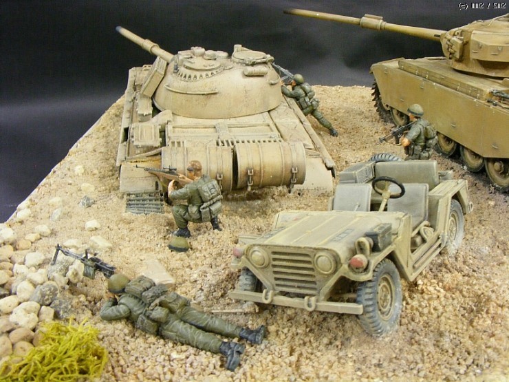 동호회 숙제로 센트리온탱크를 만들었는데 뭔가 허전하여 하나 둘 구색을 갖추다 보니 일이 커져 디오라마가 되버렸네요. 6일 전쟁 당시를 모티브로 꾸며봤는데 실력이 미천하여 또 '고증무시'라는 말을 곁들여야겠네요. 요즘 경기불황으로 생긴 스트레스를 모형 만드는 재미로 이겨내고 있습니다. 회원님들 모두 힘내시고 즐감하시기 바랍니다. 좋은 사진 찍어주신 BMC 서동환회장님께 감사드립니다.