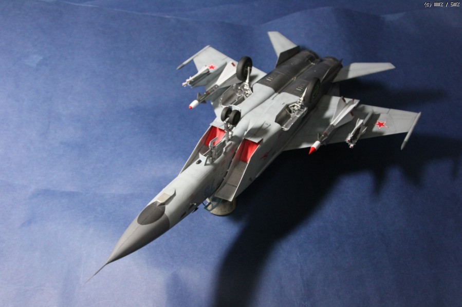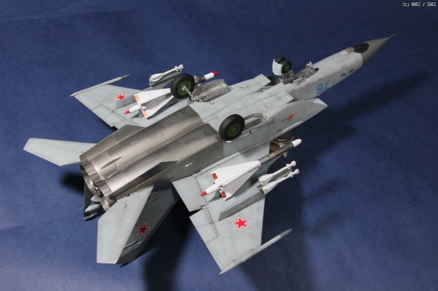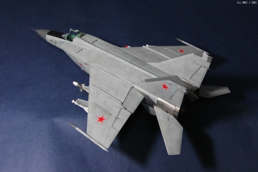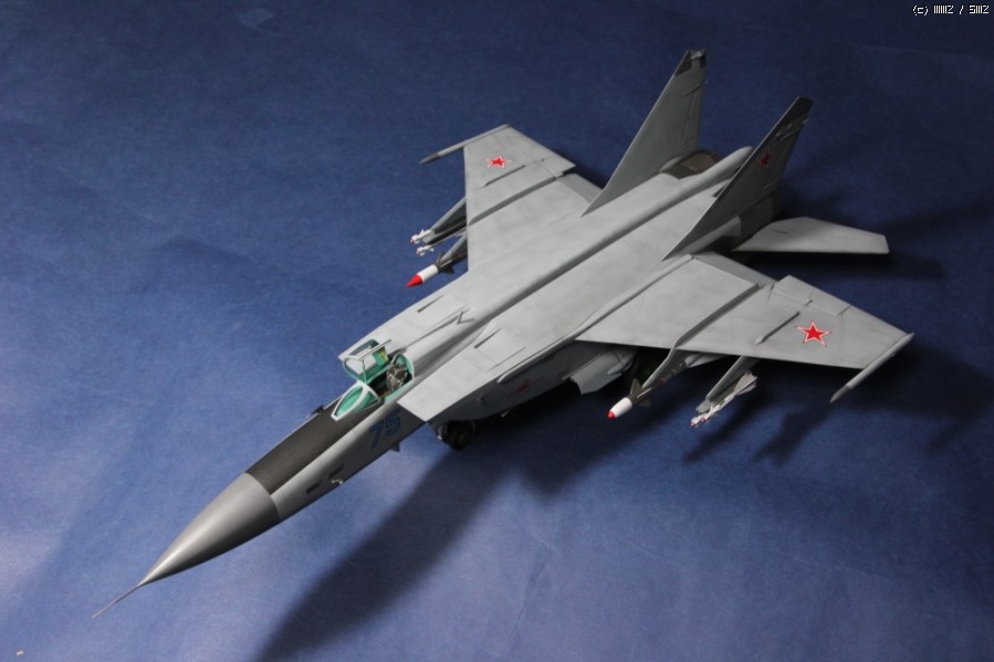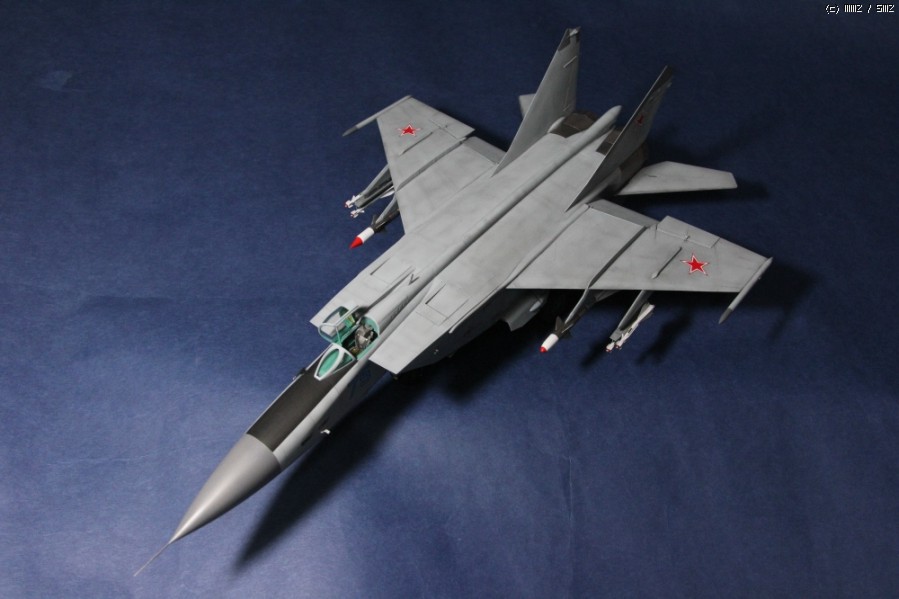 2013년 가을 발매된 Kitty Hwak사의 1/48 Mig-25입니다. 제가 완성한 타입은 설명서에 따르면 PD형이라고 하네요. 도색은 군제락카 308번을 기본으로 유화워싱만 약간 추가하였습니다. 레이돔과 수직미익끝은 305번입니다. 데뷰당시 서방세계에 큰 충격을 안겨준 마하3급의 기체로 유명하고 특히 거대한 두개의 엔진노즐이 아주 인상적이어서 첫번째 사진으로 올렸습니다.