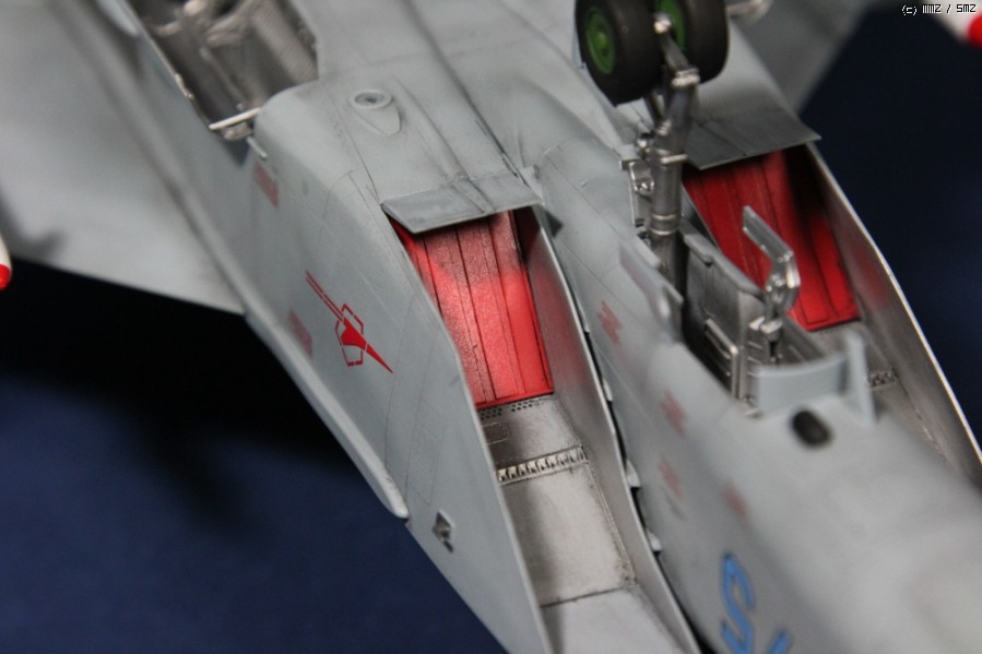 이 키트의 정확성에서 가장 큰 문제는 노즐부분인데 키트는 요격형인데 노즐은 정찰형(길이가 긴 형태)것이 들어있습니다. 별매도 마땅히 없는 것 같아 실기사진을 참고하여 잘라내어 길이를 맞추고 내부의 디테일과 외부 패널은 실기 사진을 보며 플라판으로 몇가지를 추가했습니다. 내부에 들어있는 밝은 녹색의 링은 서방전투기에는 없는 색상이어서 독특합니다.