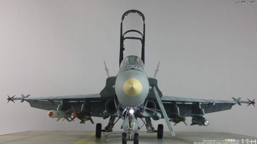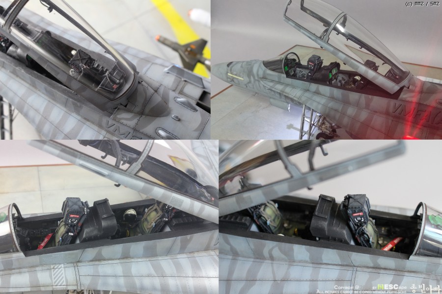 캐노피 및 콕핏에 디테일업을 해 주었고, 내부에 자작 LED발진회로를 이식하여 수직미익의 편대등은 점멸하게 하였습니다. 동영상이 안되 보여드릴 수는 없네요