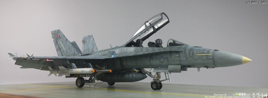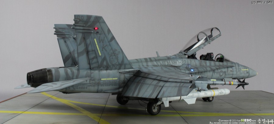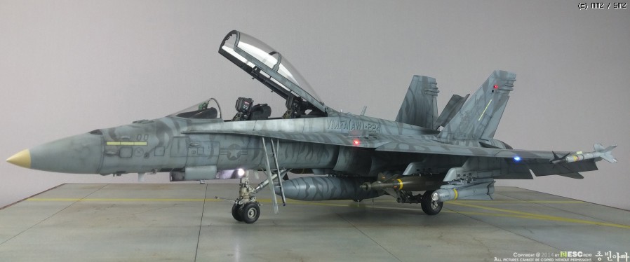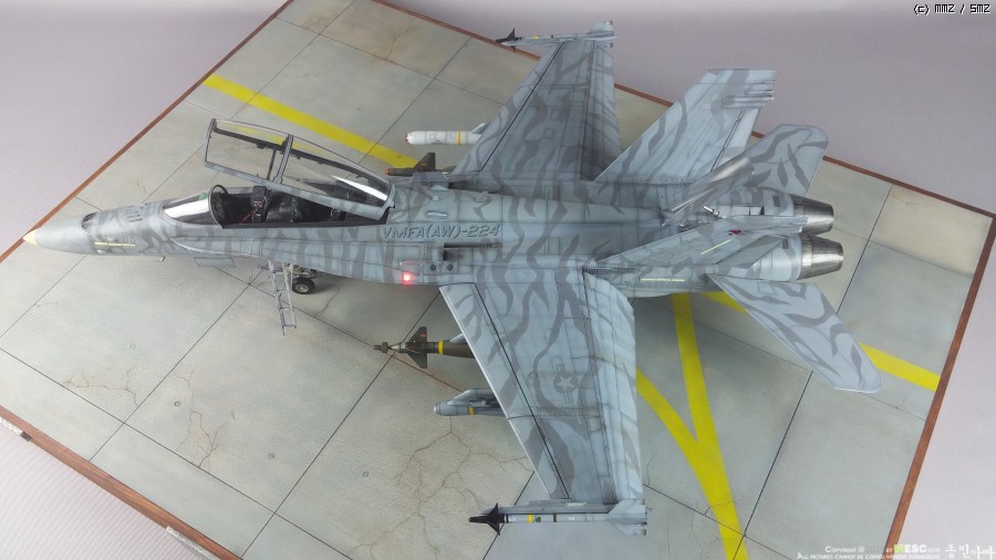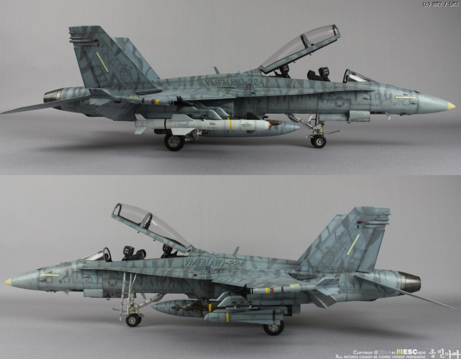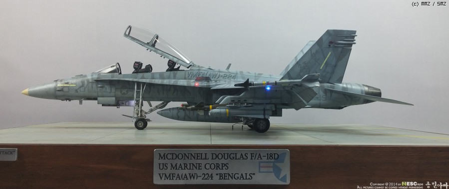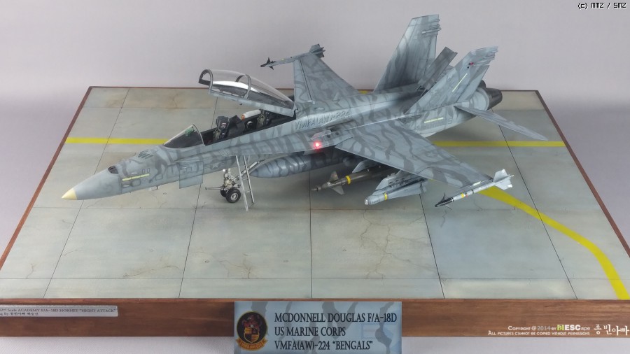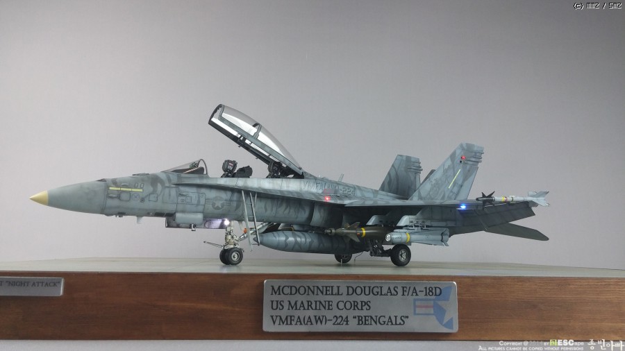 아카데미 F/A-18D 나이트어택 킷을 이용해서 VMFA(AW)-224 뱅갈스 편대마킹으로 제작해 보았습니다.