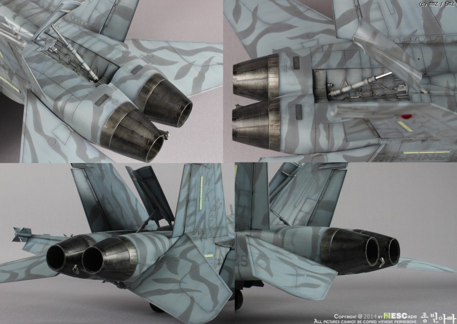 엔진노즐은 킷에 있는 것을 사용하되, 스틸색 조색 및 웨더링을 통해 느낌을 살려보고자 했어요.