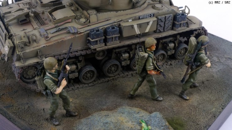 이번에 동호회 프로젝트로 만들어보게된 IDF M50셔먼을 포함된 공수부대 인형들과 같이 배치해봤습니다. 이래저래 매번 어려운 베이스 작업이지만 재미있네요. 특히나 전차 만들때 베이스가 있고 없고가 차이가 큰거 같더군요