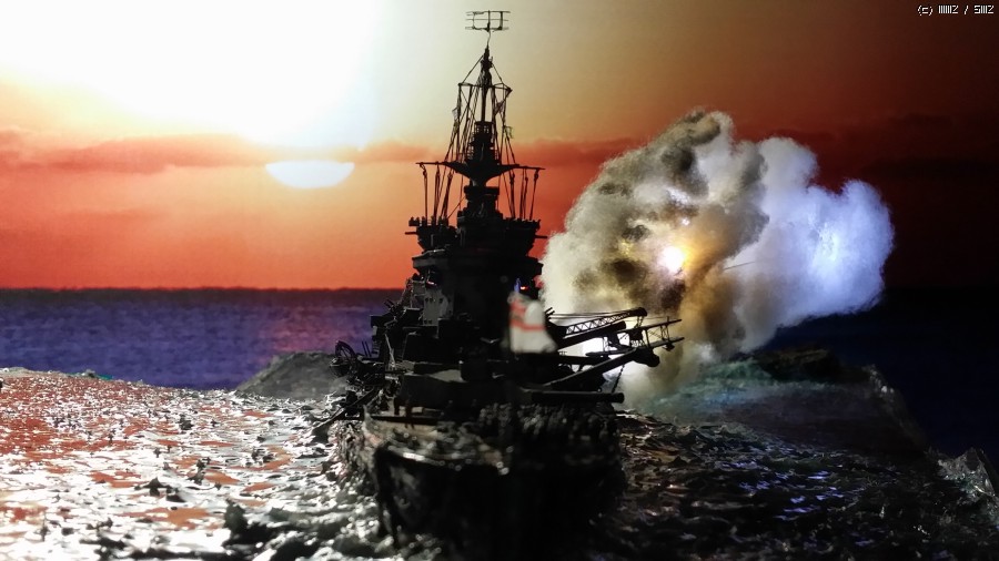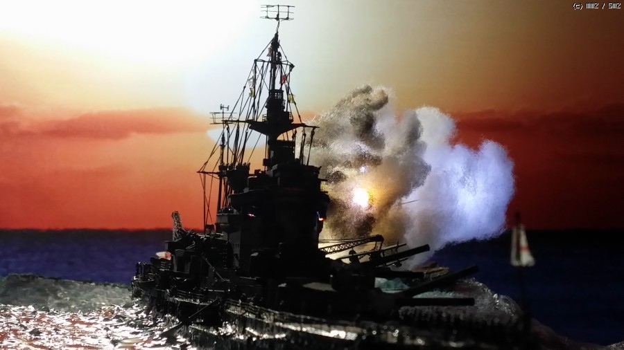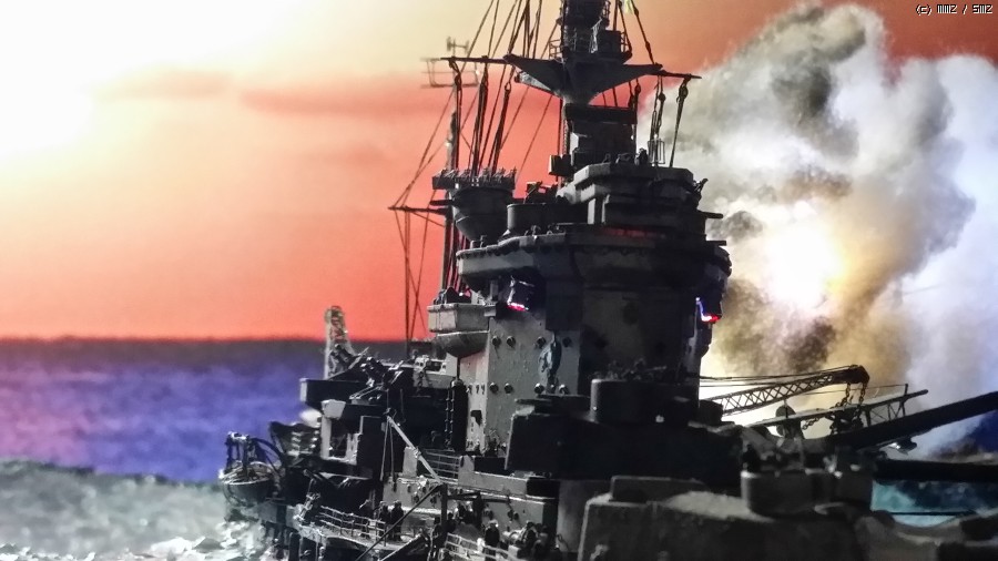 약 100일간 공들여 만든 제 첫번째 전함이자 두번째 함선인 아카제 한정판 워스파이트 1/350 입니다. 기본 킷은 아카 한정판이며 기타 별매 애칭에 노스스타와 후지미의 수병을 추가시켜 줬으며 LED를 이용 함포사격을 재현해 보았습니다.